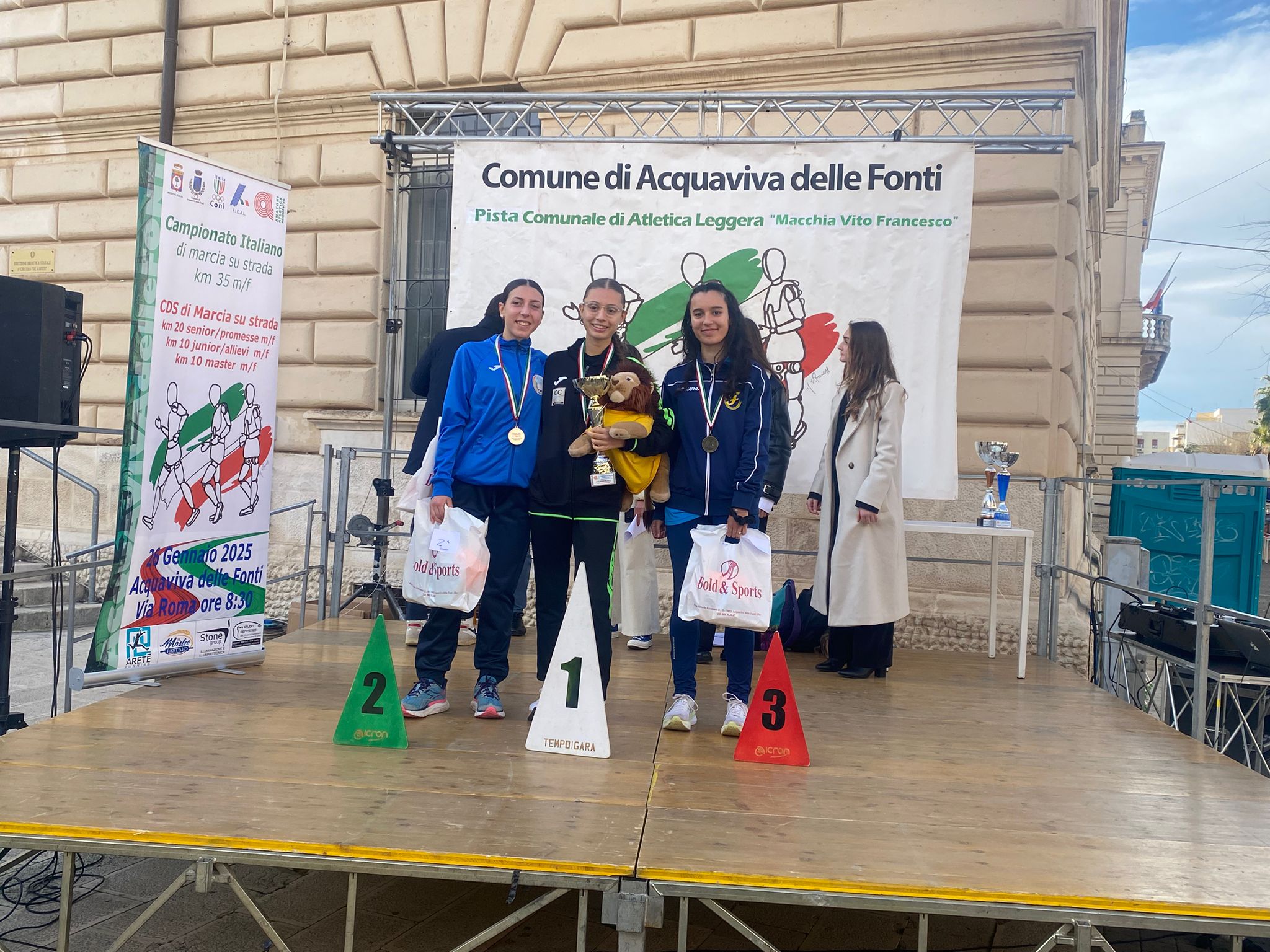 Il carabinieri Cosi vincitore della gara di marcia 20 km. Palmonari prima nelle allieve con il primato regionale e la junior Buselli sotto i 50 minuti nella 10 km.