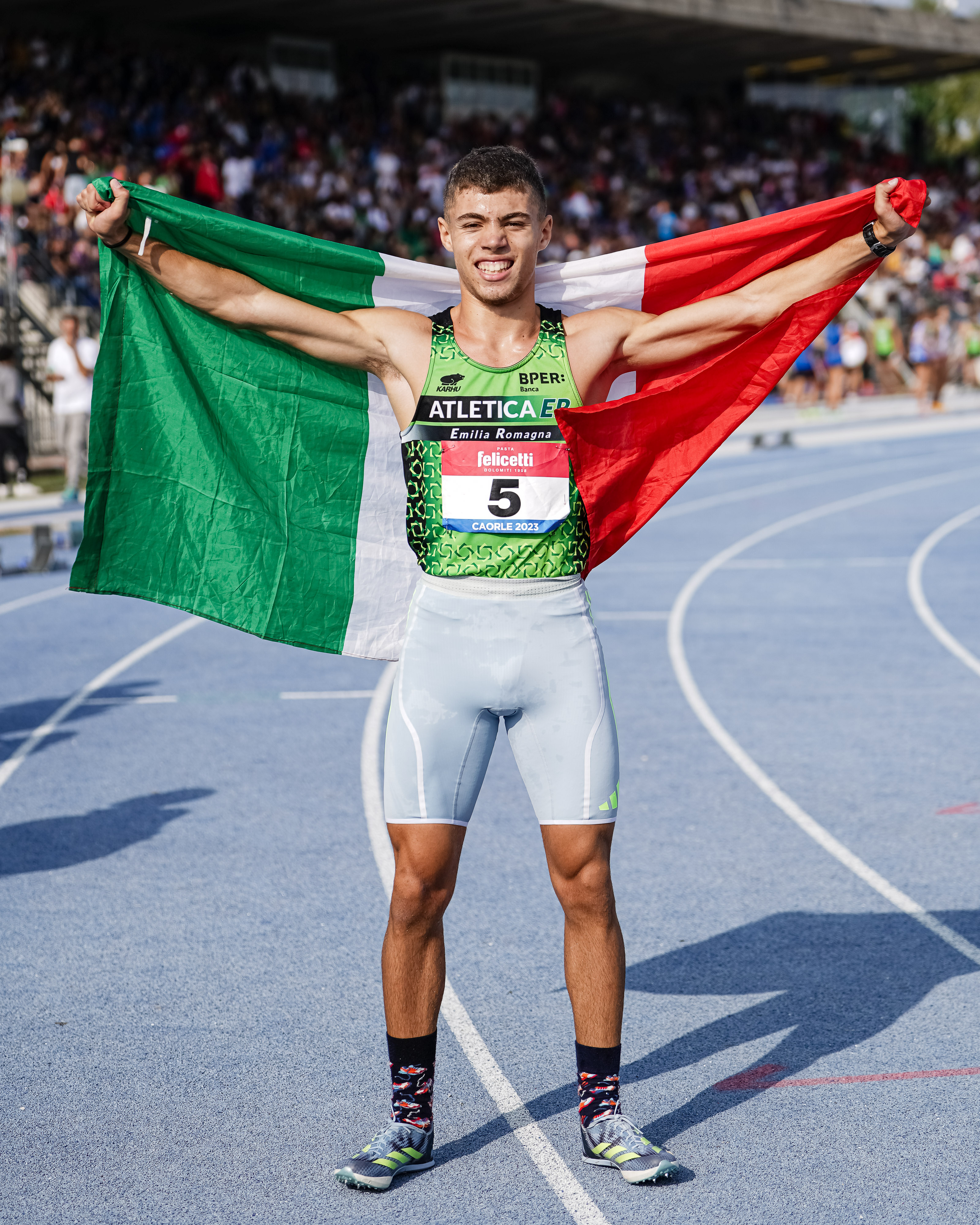 | 06 Ottobre 2023 Tamberi esalta i cadetti: “Siete i numeri 1” Cerimonia-show a Caorle per i Tricolori U16, l’oro olimpico travolto dall'entusiasmo dei giovani. “Vi auguro di conquistare il mondo, tutto dipende soltanto da voi”. Il presidente Mei: “Chi fa atletica ha una marcia in più” | |