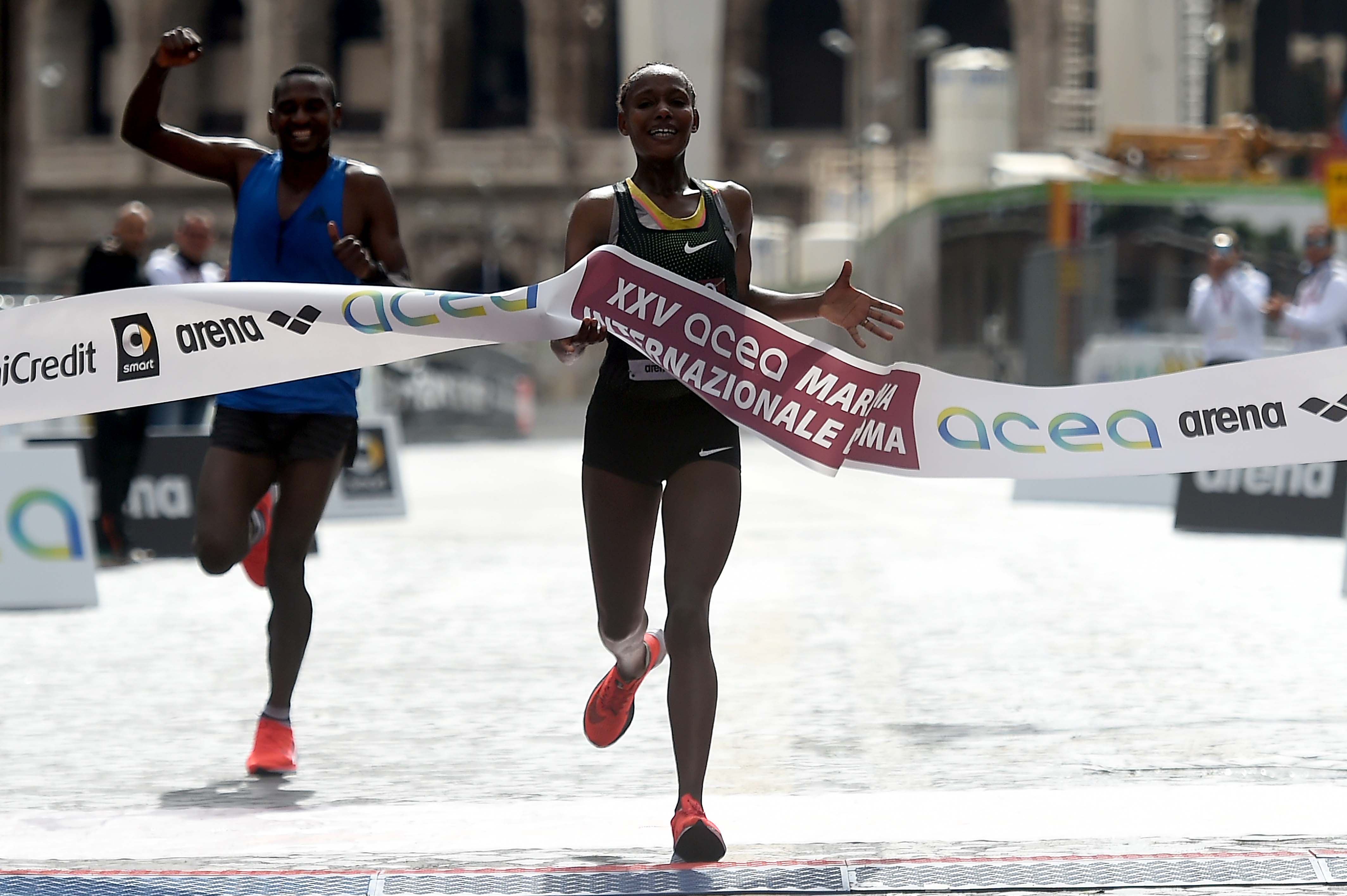 | 07 Aprile 2019 Roma: doppietta Etiopia, al femminile è record Acea Maratona Internazionale corsa a lungo sotto la pioggia: tra le donne trionfa Megertu (2h22:52), al maschile successo per Heyi (2h08:37). Soufyane quarta, ritirato Meucci | |