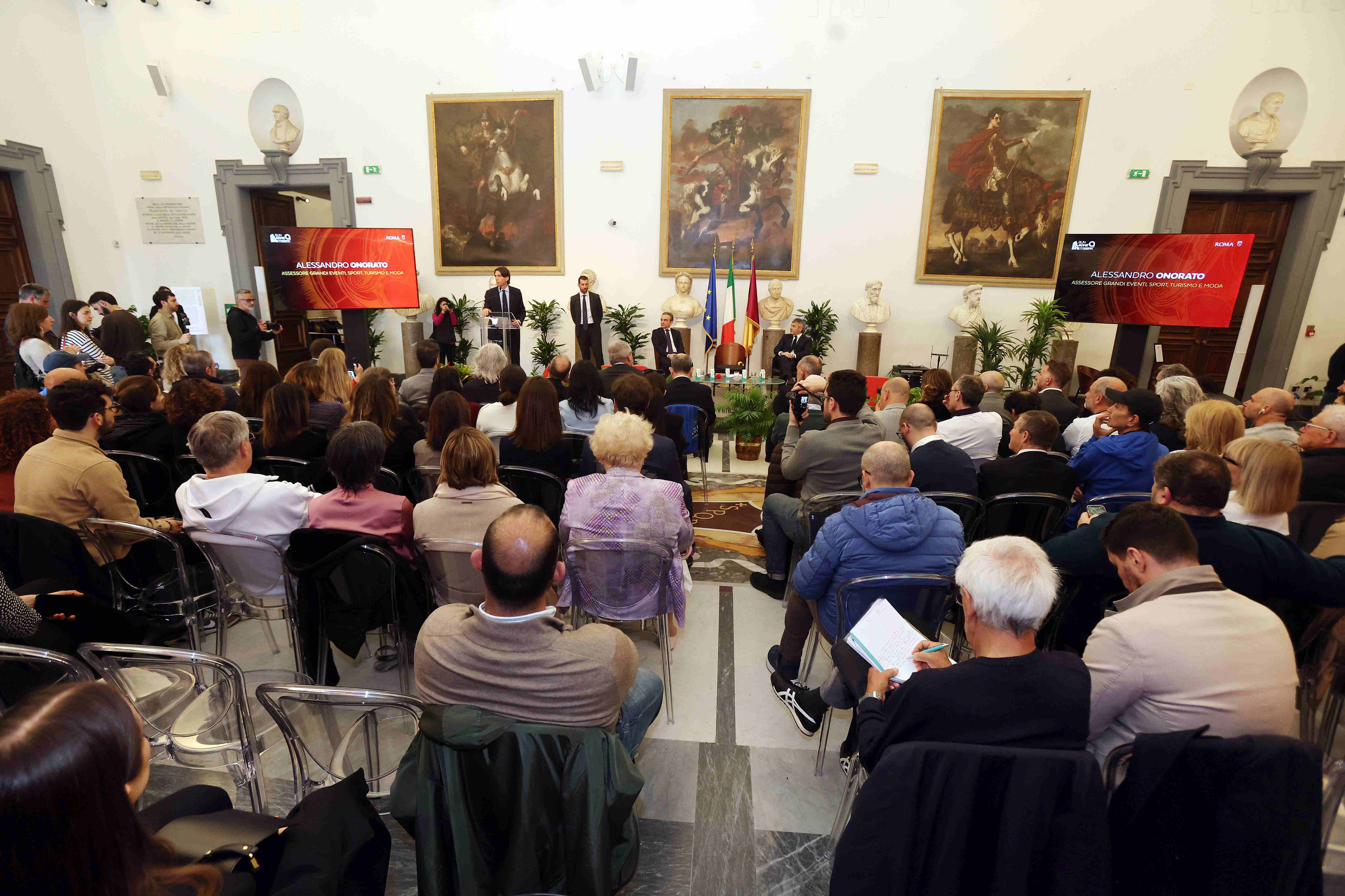 Acea Run Rome The Marathon presentata in Campidoglio, sede di Roma Capitale, con la presenza dell'Assessore ai Grandi Eventi, Sport e Turismo di Roma Capitale Alessandro Onorato, il Presidente del Consiglio regionale Lazio Antonello Aurigemma, Alessandro Cochi CONI Lazio e Virman Cusenza Direttore Comunicazione Acea. Presente anche Alessandro Annibale Responsabile Commerciale Joma Sport.