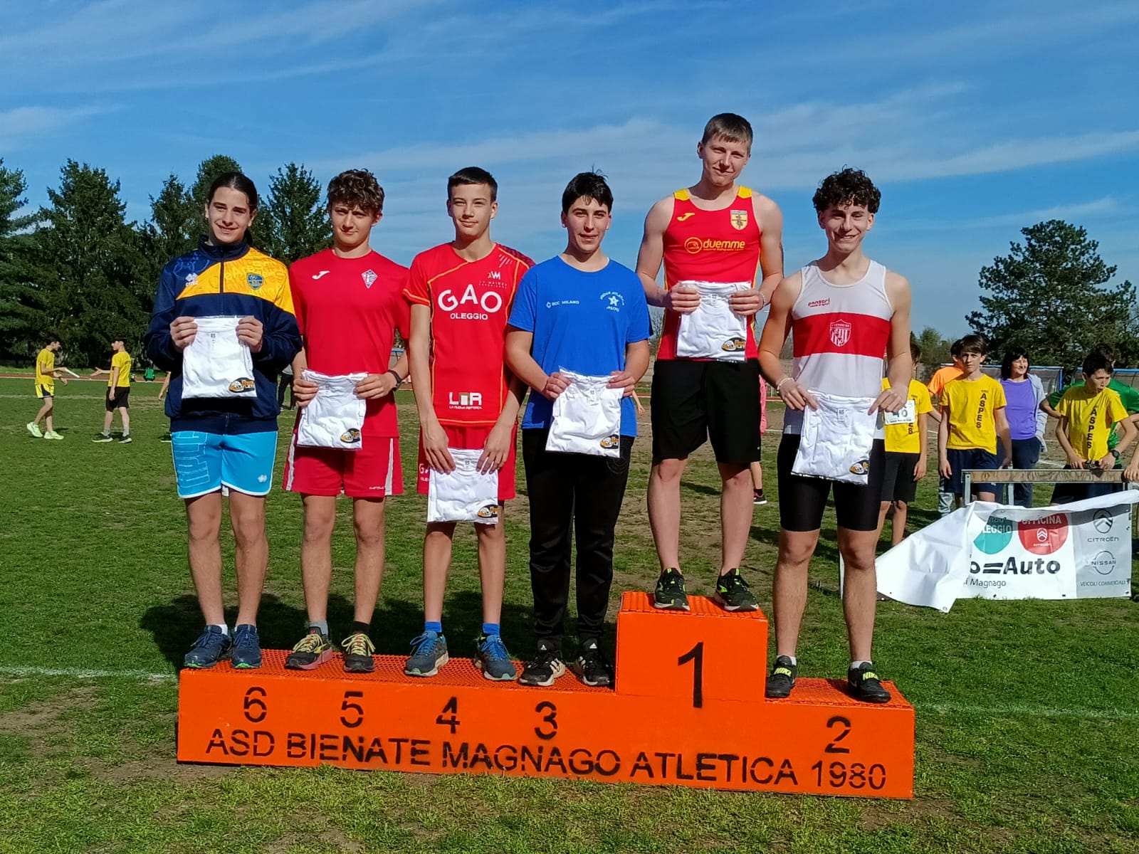 Cresce di un paio di metri il disco di Angelo Piantanida (CUS Pro Patria Milano), primo tra gli Allievi con 43.86; dietro c'è il novarese Mattia Bresciani (GAO Oleggio) con 42.88, terzo Samuele Fossati (SOA Cornaredo) 41.82, che cresce di ben sei metri.