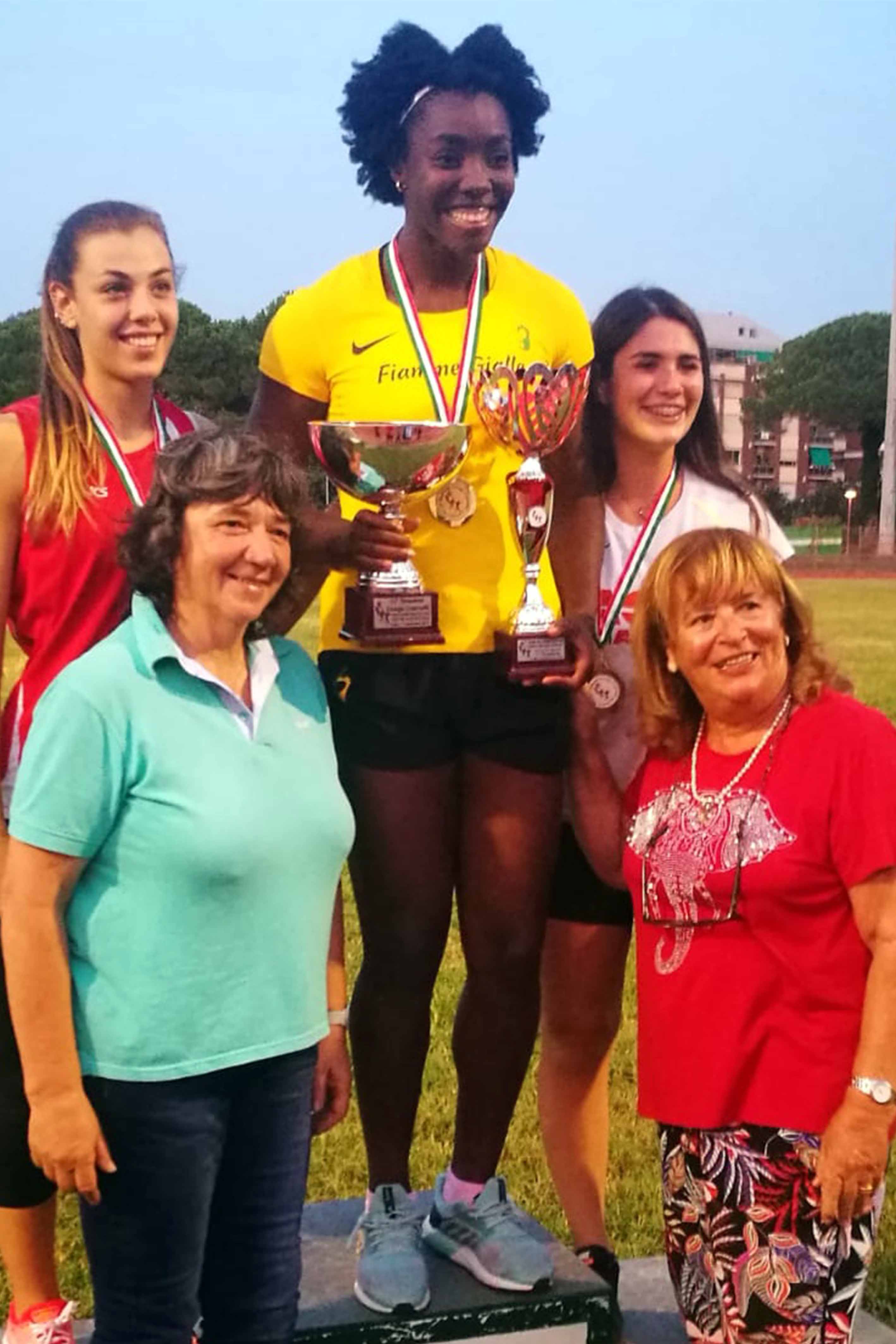 Per le donne nel giavellotto s’impone Carolina Visca (Fiamme Gialle), con un lancio vincente a 54,77 e si aggiudica anche il “Trofeo Gigliozzi”. Prima nel martello è Lucia Prinetti Anzalapaya (Fiamme Gialle), con l’attrezzo che atterra a 56,79. Daisy Osakue senza rivali nel disco vince il “Trofeo S. Simeon” con la misura di 58,38, aggiudicandosi anche il “Trofeo G. Guarnelli” per il miglior risultato tecnico femminile.