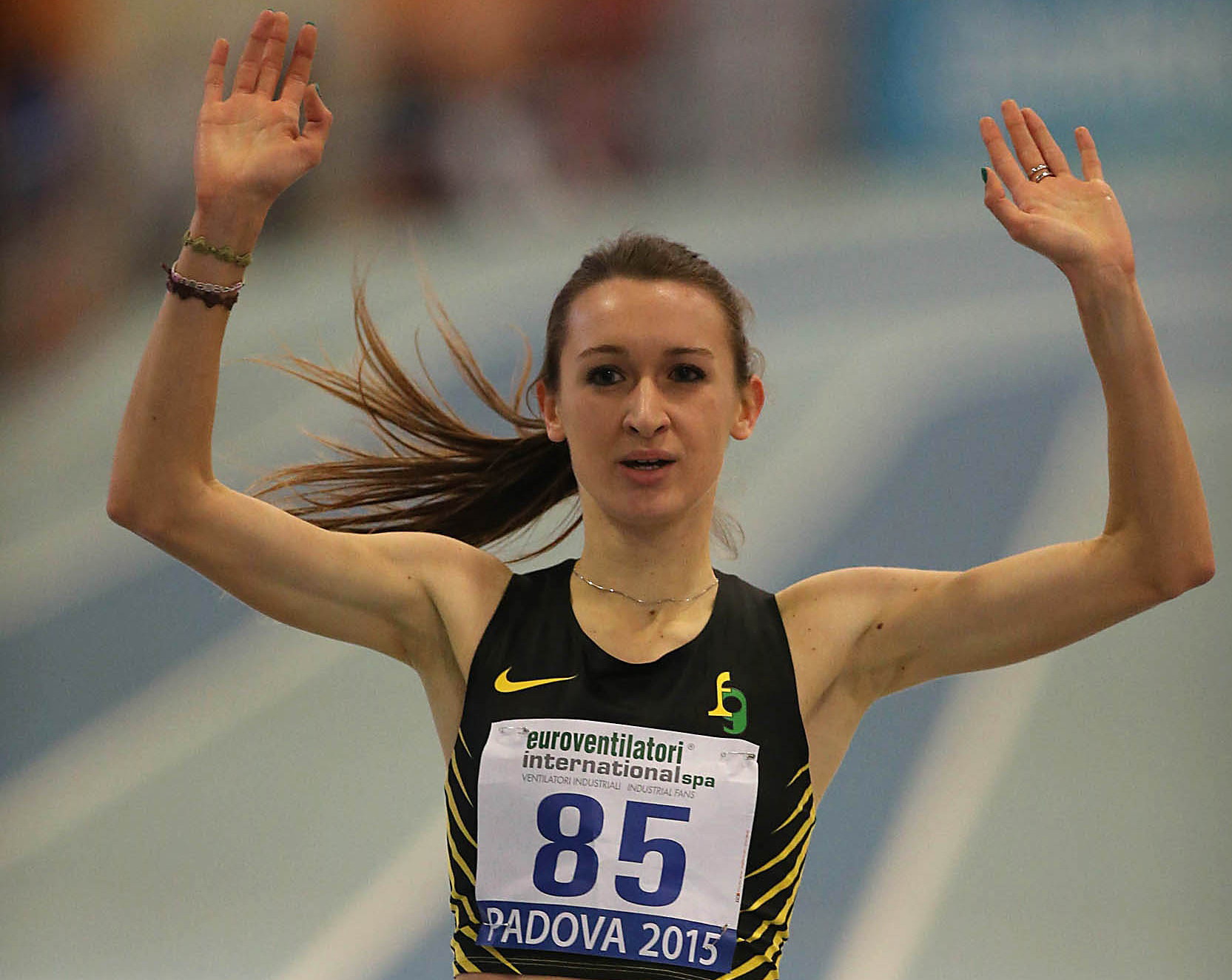 Il Veneto corre, eccome se corre. Il pomeriggio della seconda giornata dei campionati italiani Assoluti indoor inizia con Matteo Galvan che s’impone d’autorità nei 400. Il vicentino delle Fiamme Gialle chiude in 46”80, quarto tempo della carriera. La sua supremazia è netta. E viene completata da un podio interamente veneto, con il veneziano Francesco Cappellin argento in 47”39 e il poliziotto Isalbet Juarez terzo in 47”94. Poi sale in cattedra Giulia Alessandra Viola (foto). La trevigiana delle Fiamme Gialle bissa il titolo vinto ieri nei 1500, superando Federica Del Buono in uno dei duelli di maggior spessore tecnico dell’intera rassegna. Federica lancia la gara, ma nel finale, quando prende l’iniziativa la trevigiana, la luce della vicentina si spegne: Giulia allunga, prende qualche metro a Federica e va a chiudere in 8’56”23, 48 centesimi meglio del primato personale realizzato a fine gennaio a Karlsruhe. Federica, che in settimana aveva accusato un lieve stato febbrile, è seconda in 9’01”19, miglior prestazione italiana promesse: cancellato il primato della Dandolo, 9’03”59, risalente al 1982. Una domenica da incorniciare anche per la vicentina Laura Strati, arrivata al titolo italiano di salto in lungo con il nuovo personale: 6.53. Per la cassolese una grande soddisfazione, suggellata da quattro salti sopra i 6.40 (6.40 alla prima prova, 6.43 alla seconda, 6.53 alla quinta e 6.42 alla sesta). Il progresso sul personale (11 centimetri rispetto al 6.42 siglato sempre a Padova a fine gennaio) la colloca al quinto posto nella graduatoria italiana indoor di tutti i tempi. Il poliziotto Silvano Chesani, assente Fassinotti, conferma il ruolo di favorito nell’alto, aggiudicandosi la maglia tricolore con 2.29. Poi, rimasto solo gara, l’altista delle Fiamme Oro si concede pure un tentativo, non velleitario, sui 2.35 del record italiano. A 2.18 pure il bronzo di Eugenio Rossi (Biotekna Marcon). Il poliziotto vicentino Michael Tumi regala un centesimo ai progressi Delmas Obou (6”66 contro 6”67) ed è secondo nei 60, dove va registrata anche la quarta piazza del veronese Giovanni Galbieri (6”72). In chiusura, l’argento dell’eterno Paolo Dal Soglio nel peso: 17.77 alle spalle di Daniele Secci (19.56). Per il Veneto, insieme al successo organizzativo, un bottino complessivo di nove ori (cinque nella prima giornata, quattro nella seconda) su un totale di 26 titoli assegnati.