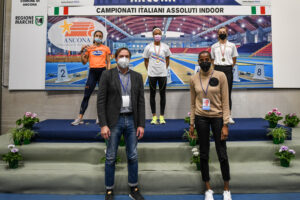 Sei argenti e un bronzo. Questo il bilancio del Veneto nella prima giornata degli Assoluti indoor, scattati oggi ad Ancona con l’assegnazione dei primi 11 titoli. Le lunghiste Laura Strati (Atl. Vicentina) ed Eleonora Filippetto (Team Treviso) accompagnano sul podio (foto) Larissa Iapichino, dopo il sensazionale 6.91 che ha dato alla doppia figlia d’arte il record mondiale under 20. In una finale di ottimo livello, la vicentina atterra a 6.66, eguagliando il personale indoor, e la trevigiana si conferma in crescita con un balzo a 6.34. Un’altra vicentina, Federica Del Buono, al rientro in un campionato italiano dopo sei anni, è seconda nei 1500 in 4’16”32. Argenti anche per i trevigiani Leonardo Dei Tos nei 5 km di marcia (19’41”18) e Matteo Miani (Assindustria Sport) nell’asta (5.32). Prevedibile il primo, meno il secondo, con il saltatore di Villorba che si migliora di 12 centimetri in un colpo solo. Argento anche per la junior veronese Rebecca Mihalescul nell’alto (1.84): per lei, che ha da poco compiuto 19 anni, altri 2 centimetri di progresso. Seconda piazza, infine, per Hassane Fofane (Fiamme Oro) nei 60 ostacoli (7”80).