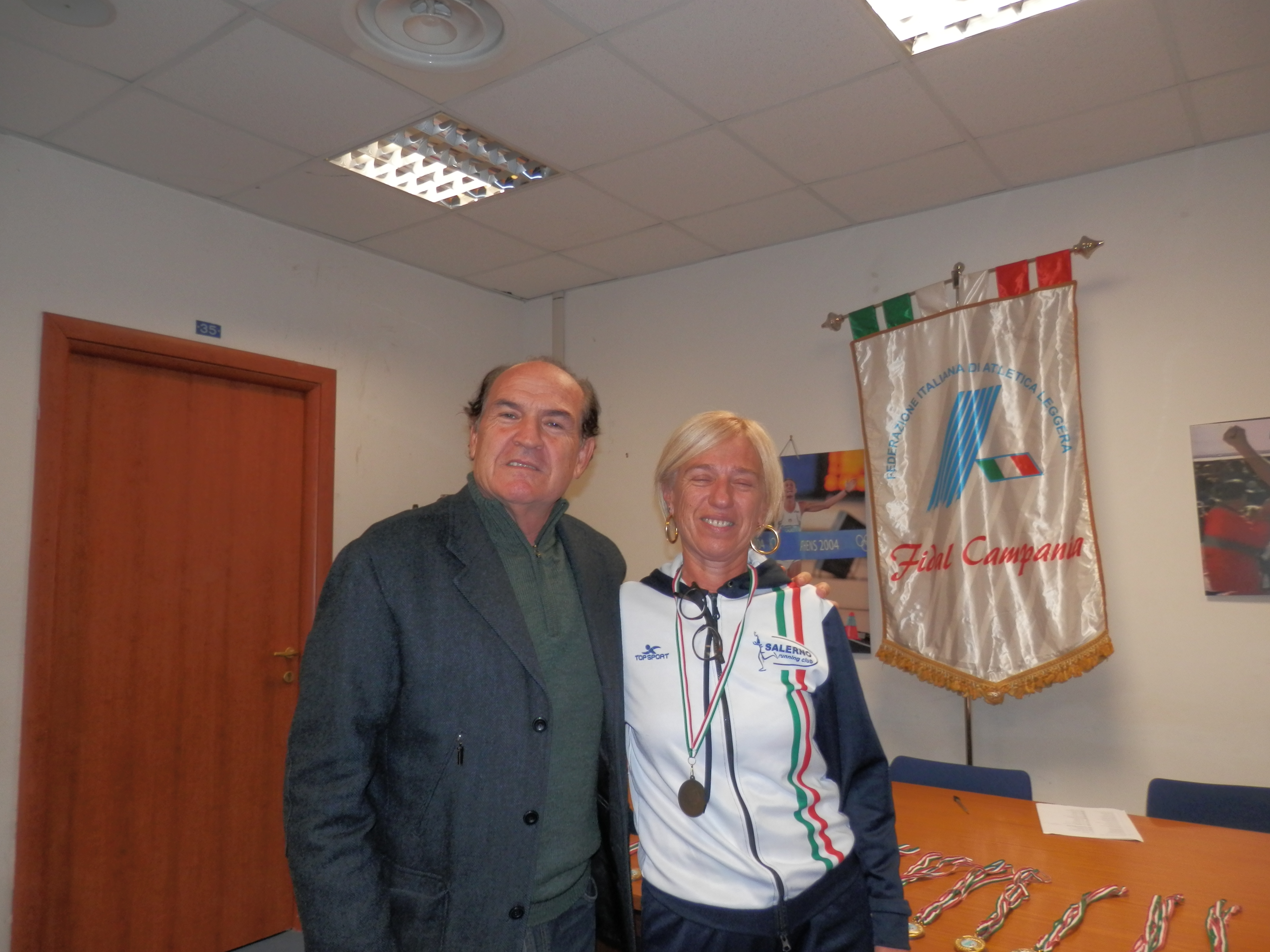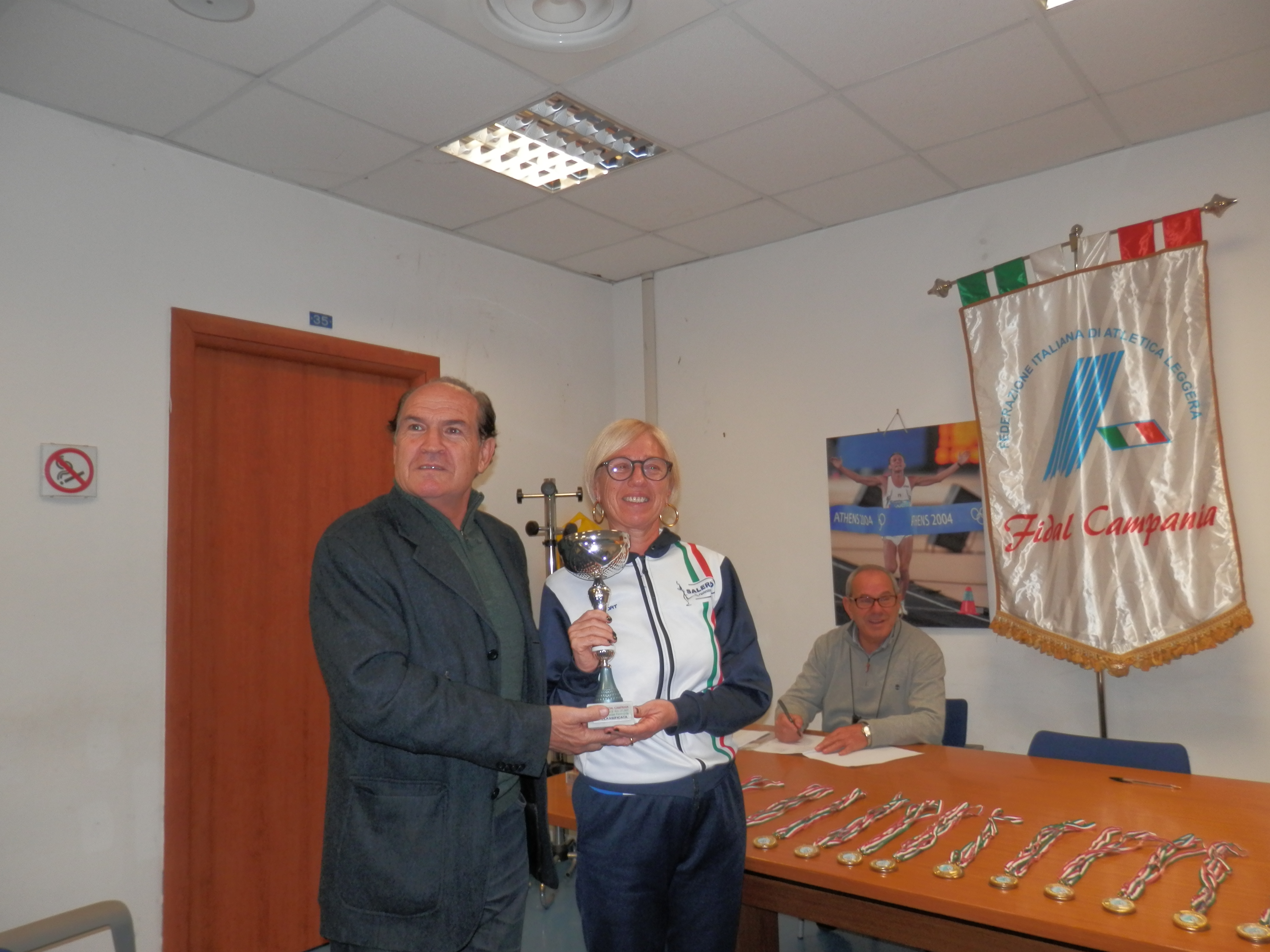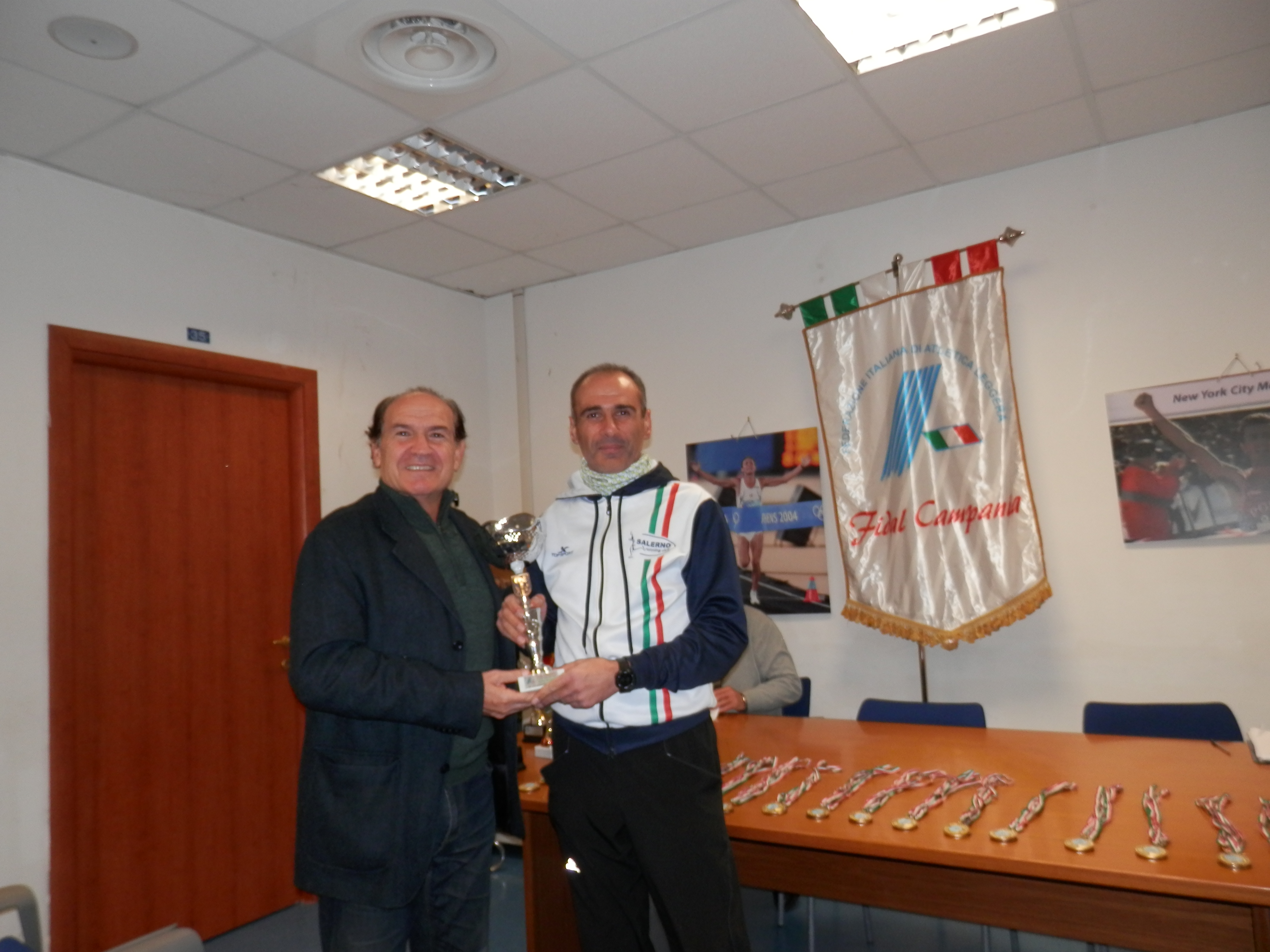 A ciascuno atleta Master presenti in Sala sono stati consegnate le varie Medaglie Oro,Argento e Bronzo di categorie e per le società le relative Coppe. Tra gli atleti premiati presenti alla cerimonia di premiazione vogliamo ricordare la compagine della società Salerno Running Club ed i suoi atleti: