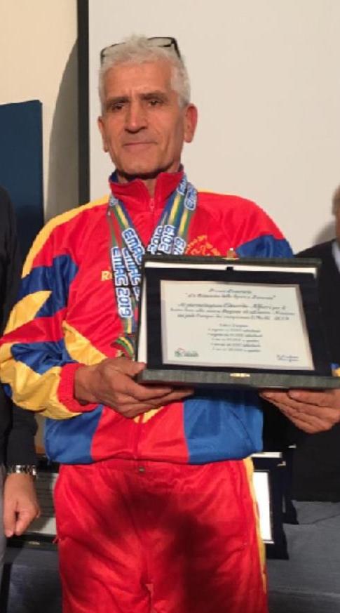 17 Maggio 2022Edoardo Alfieri, classe 1956, tesserato per il Centro Sportivo Giovanile di Santino Mineo, venerdì 13 maggio, si regala e ci regala bel tre medaglie d'oro conquistate ai Campionati Europei Master di Grosseto. La prima nella gara dei 10 km Race Walking M65, dove taglia per primo il traguardo col tempo di 56:13 e lasciandosi alle spalle un gruppo di altri 14 concorrenti, dominati sin dalle prime battute della gara. Sempre grazie alla sua prestazione ed a quelle ottenute dai compagni di squadra: Patrizio Donati e Fortunato Vincenzo, il Team Italia conquista la medaglia d'oro.