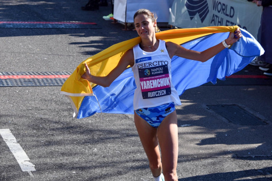 Prima della partenza è stato rispettato un silenzio di 30” per la pace e per commemorare le vittime della guerra in Ucraina di questi giorni e per tutte le guerre. Momenti sicuramente molto emozionanti e toccanti per Sofiia Yaremchuk che oltre ad essere arrivata sventolando la bandiera del proprio Paese d’origine ha corso con un fiocco nei capelli con i colori dell’Ucraina: “Un primato personale importante – dice la portacolori del C.S. Esercito Italiano – sapevo di essermi allenata bene a Iten in quest’ultimo mese, certo gli ultimi giorni sono stati veramente difficili per me e con tanta preoccupazione. Napoli, questa gara, questa giornata, tutto è tato splendido. Dedico questo mio successo all’Ucraina e a Leopoli, la mia città a circa 200km da Kiev”.