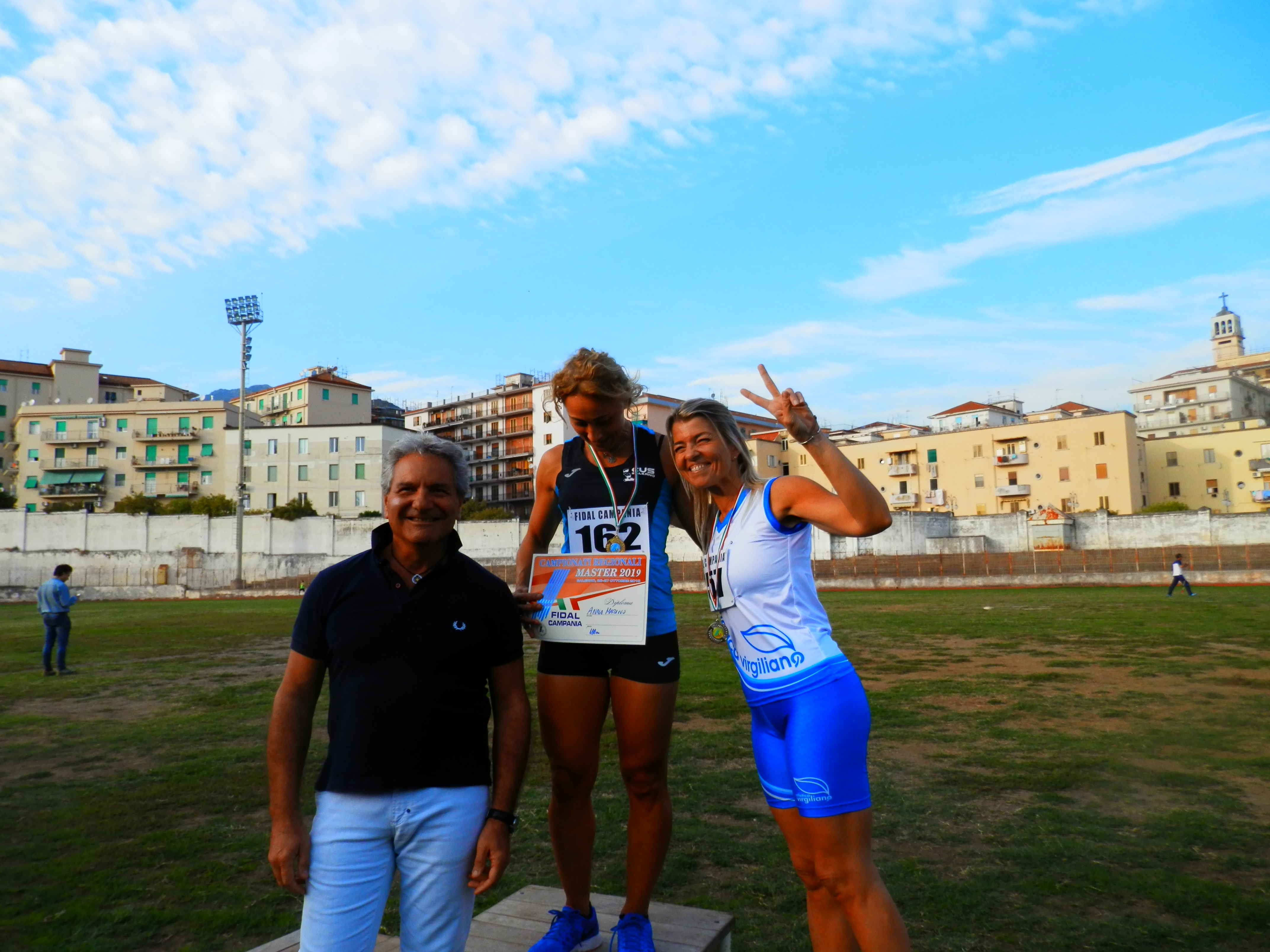Nel settore master femminile hanno conseguito 3 Titoli Regionali per Arca Atletica Aversa Patrizia Aletta nella categoria SF45 nel Disco(29,79),Martello(38,77) Martello Maniglia Corta(10,59),tris di Titoli anche per la compagna di team Maria Perrotta SM 65 nel Disco(10,79) nel Martello(13,96) e martellone con 5,42. Hanno conseguito tre Titoli Regionali SF 40 Claudia Rosana Landrieu(Atletica Posillipo)nel Martello(20,10),nel Giavellotto(12,50)e Disco con 14,08. Per il team Arca Atl. Aversa SM45 doppietta di Simona Giorgi nei 400m(1’18”1)e nell’Alto con 1,26; Vis Nova Lyubov Dovhopolyuk(SF55) nel Peso (9,77) e Disco con un lancio di 30.51,39. Ancora nel settore master femminile da segnalare il doppio Titolo di Roberta Greco(Cus Salerno) SF40 negli 80hs(16"1)e Lungo con 4,17 ed ancora doppietta anche nella cat.SF 40 con Katiuscia Capua(Napoli Running) nei 100m(15"1) e 400m(1'11"3) ed ancora SF 35 Annachiara De Pippo(Cus Salerno) nei 100m(13”3) e 200m (28”);SF45 Valentina Russo(Atletica Posillipo) nei 1500m(6’04”7) e 5000m (22’30”6); SF55 Nicoletta Rinaldi (Vis Nova)nei 1500m(6'54”7)e 5000m(25’15”7); SF 50 Lucia Sferruzzi(Astro 2000) nel Disco(23,10) e Martello(25,21); per il team Hippos tra i SF 45 Stefania Ciafardini nel Giavellotto(17,50) e Peso con 6,80; SF 50 Bruna Carignani nel Giavellotto(20,65) e Peso (6,80) ed infine per SF45 Anna Marino(Cus Salerno) nei 100m(13”7) e 200m con il crono di 29”5.
