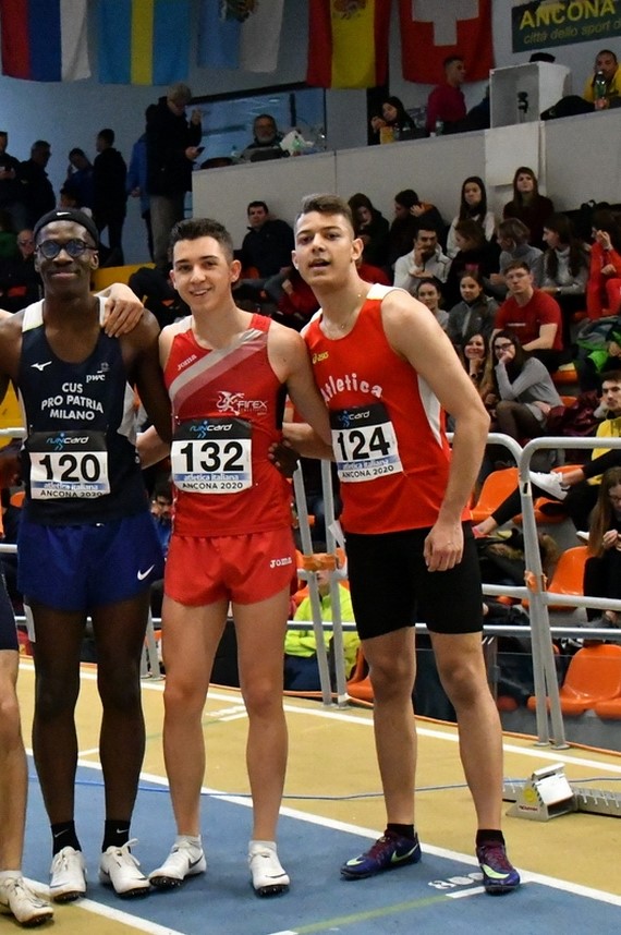 10 Febbraio 2020(alefloris) Grande prova degli atleti sardi impegnati oggi ad Ancona nella seconda giornata dei campionati italiani indoor juniores e promesse. In tre sono saliti sul podio, tutti tra gli under 20: Dalia Kaddari (Fiamme Oro), la leonessa dello sprint, si è aggiudicata i 200 metri col nuovo primato italiano di 23.85, Leonardo Porcu (Atl. Oristano) è stato secondo nei 60 hs migliorando per due volte il suo primato regionale, Alessia Farci (Cus Cagliari) è salita sul terzo gradino del podio nel salto triplo, anche lei migliorando il primato regionale che già le apparteneva.