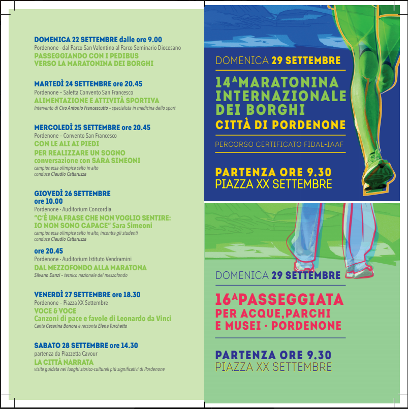 Di Seguito si da Lettura della Locandina della Maratonina dei Borghi che si svolgerà a Pordenone il 29 settembre 2019.