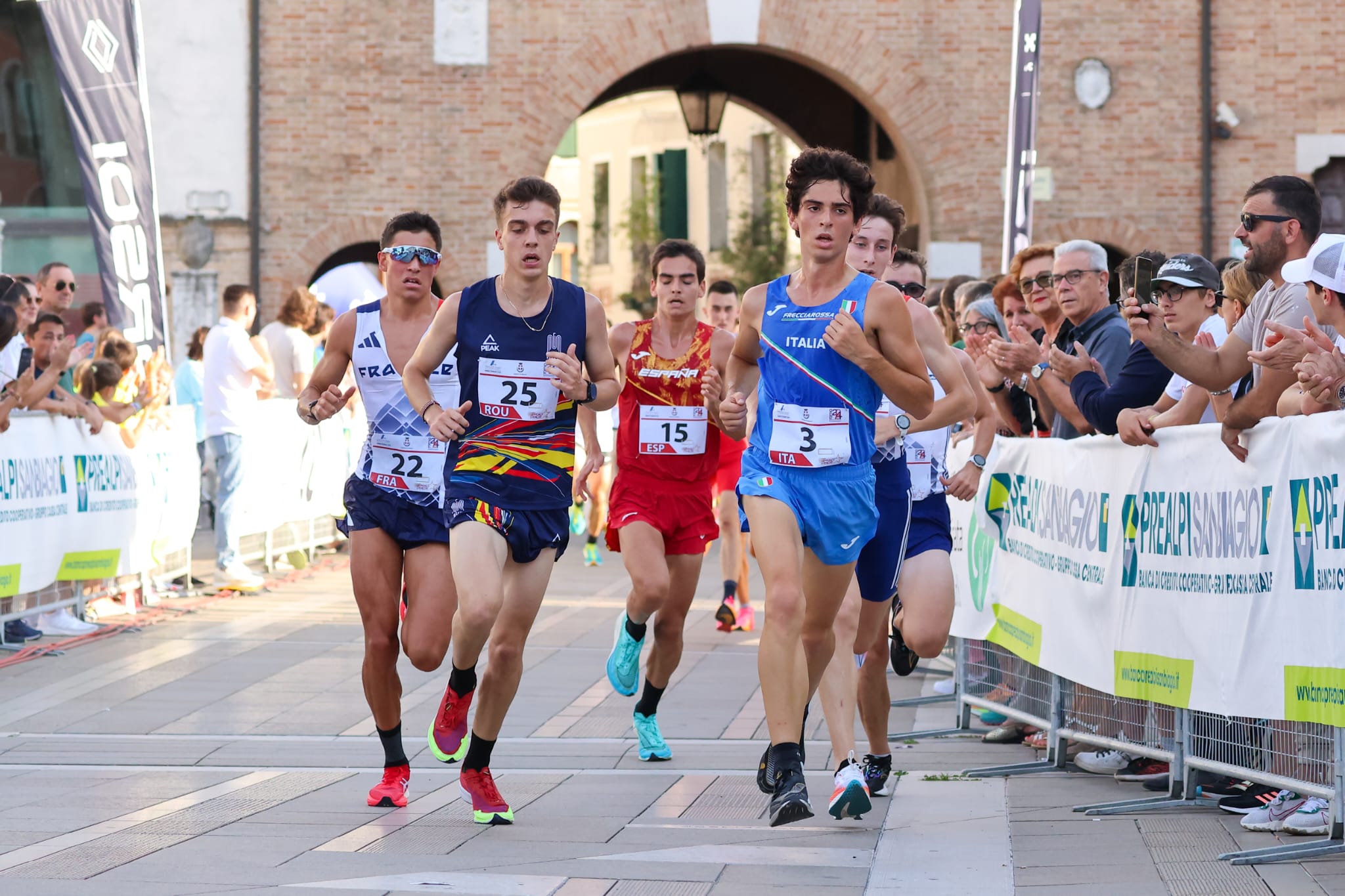 UOMINI - Il pomeriggio parte con la prova maschile che sulla distanza di 10 chilometri incorona il romeno Dragos Luca Pop (30:36), già protagonista nella parte iniziale della gara dell’anno scorso. Ottimo argento per Stefano Benzoni (30:42), portacolori dell’Atletica Valle Brembana, attivo in testa al gruppo sino al forcing finale del romeno. Terzo il serbo Aldin Catovic (30:44). Tre francesi tra i primi otto (quinto Nils Serre Gehri, sesto Pierre Boudy, ottavo Sven Durand) consegnano alla nazionale transalpina la vittoria nella classifica a squadre (1h32:38), un bis dell’edizione 2022, mentre l’Italia con il decimo posto di Francesco Ropelato (31:08) e il quindicesimo del trevigiano Andrea Botteon (31:37) è terza (1h33:27), preceduta per una manciata di secondi anche dalla Spagna (1h33:23), ma davanti in volata alla Romania (1h33:30). Finisce ventunesimo Francesco Mazza (32:06), 27esimo Alessandro Morotti (32:51). Sono i francesi a dettare l’andatura, su ritmi peraltro non trascendentali, nelle prime tornate attorno a Piazza Grande. Tra i più intraprendenti Serre Gehri, triatleta da 29:23 nei 10 km su strada, e Pierre Boudy, argento nei 3000 siepi agli ultimi Europei under 20.