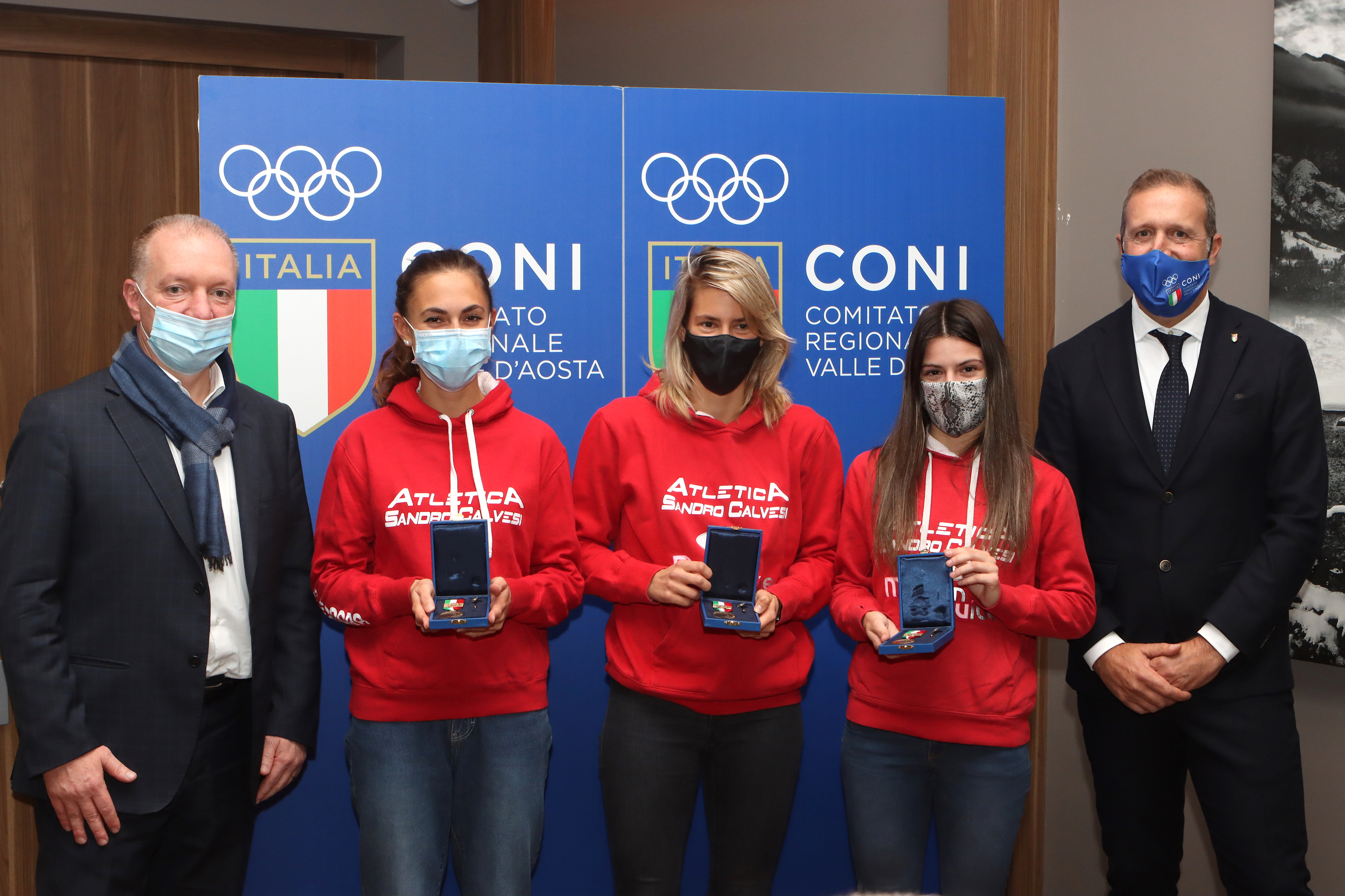 Le prime a ricevere il premio, la medaglia di bronzo al merito sportivo, sono state le quattro componenti la staffetta 4x400 femminile dell’Atletica Calvesi che nel 2019 a Rovereto ha conquistato il titolo assoluto con il crono di 3’48”35, dopo aver anticipato al coperto la stessa prestazione con la medaglia di bronzo.