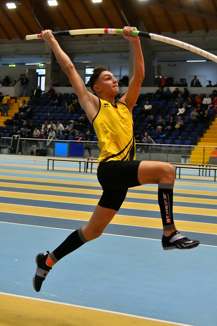 ASTA, BASILOTTA A 4,60 - Dopo un anno di pausa, le Fiamme Gialle Simoni tornano al primo posto dell'asta allievi. Giulio Basilotta è campione italiano U18 grazie al 4,60: miglioramento di 20 centimetri rispetto al personale di quest'anno al coperto proprio ad Ancona. Il finanziere classe 2003 entra a 3,90 e lo supera con facilità, così come il 4,05. A 4,20 un errore, poi dritto fino a 4,40. Un errore rispettivamente a 4,50 e 4,60 (che va al secondo tentativo) e poi tre X a 4,70, sulle quali il Palaindoor si lascia andare ad un applauso per la prestazione che vale il primo posto al non ancora 17enne e la terza medaglia d'oro del day1 per il Lazio. Argento a un altro laziale, Federico Bonanni (Studentesca Milardi) con 4,40 (nuovo PB): entra a 4,00, due X a 4,35, il 4,40 al primo colpo e poi tre errori a 4,45. Valerio Giordano (Studentesca) è settimo con 4,10; Antonio Severoni (Studentesca Rieti) 17esimo con 3,80.