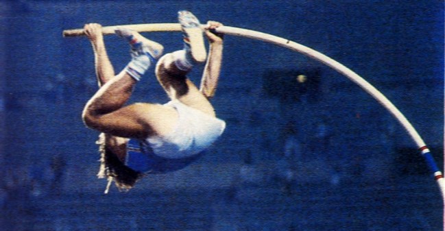 L’asta stava cambiando, stava preparando ascensioni degni del tempo dei fratelli Mongolfier, stava soprattutto per assegnare una corona imperiale. Da zar di tutte le aste. L’inverno ’84 di Sergei fu proficuo; la tarda primavera e l’estate, travolgenti: 5,85, 5,88, 5,90. La politica dei piccoli passi, centimetro dopo centimetro, non era ancora stata adottata. Il 31 agosto, come sull’affiche di un grande incontro di pugilato, il Golden Gala offriva Vigneron versus Bubka. Il match non deluse le attese: l‘uno e l’altro puntarono al ko e, anticipando il finale, è consentito azzardare che Bubka ebbe la meglio nettamente, ma ai punti, senza atterramento. Tiene bene anche la metafora della spericolata mano di poker per quei due “passi” che Sergei concesse in altrettanti momenti intricati.