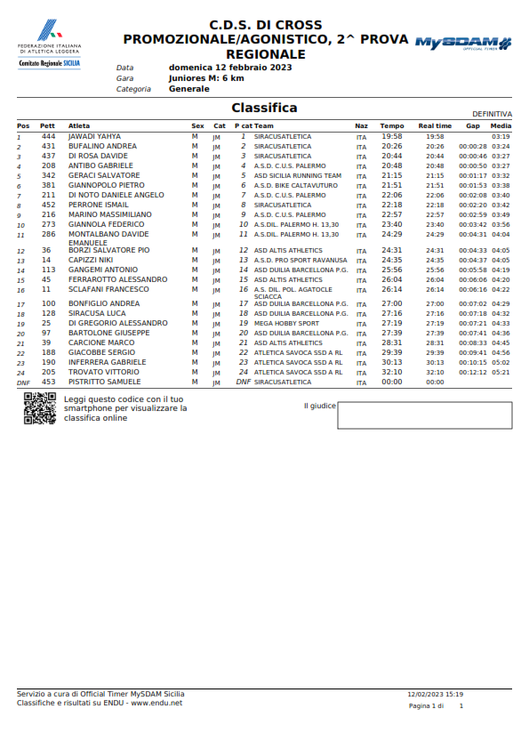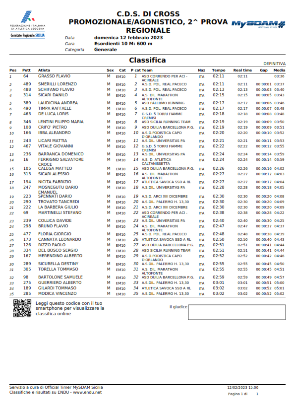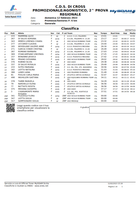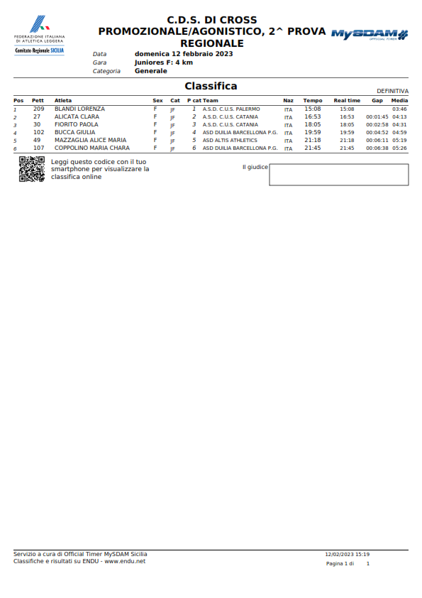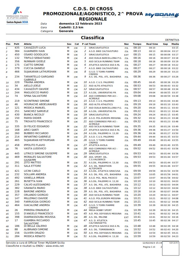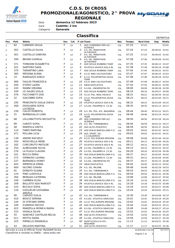C.D.S. DI CROSS PROMOZIONALE/AGONISTICO, 2^ PROVA - Classifiche -