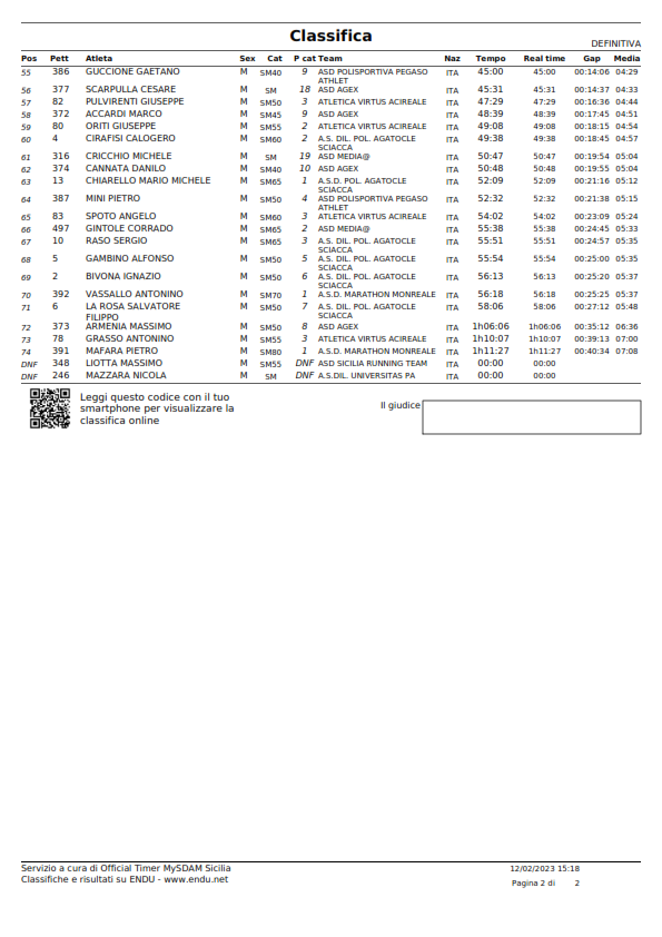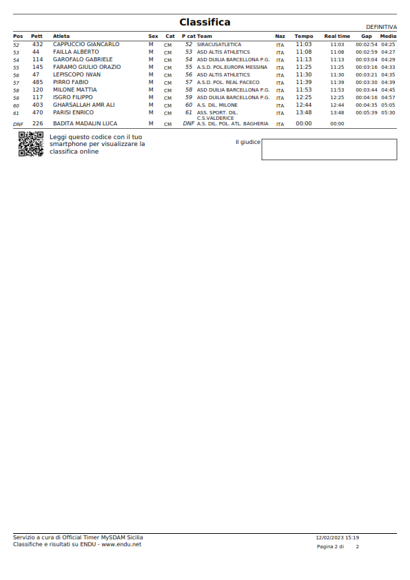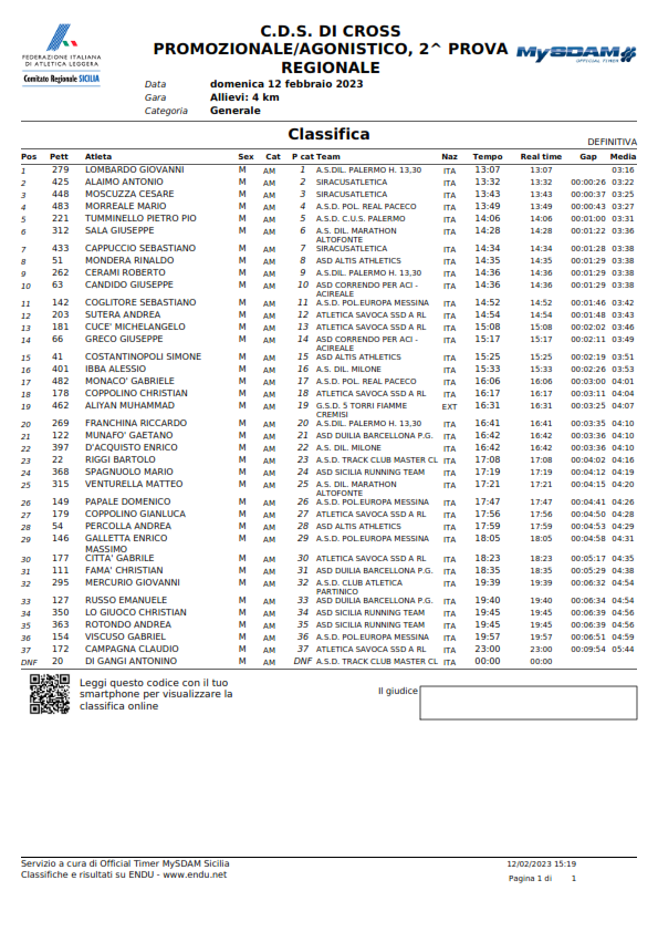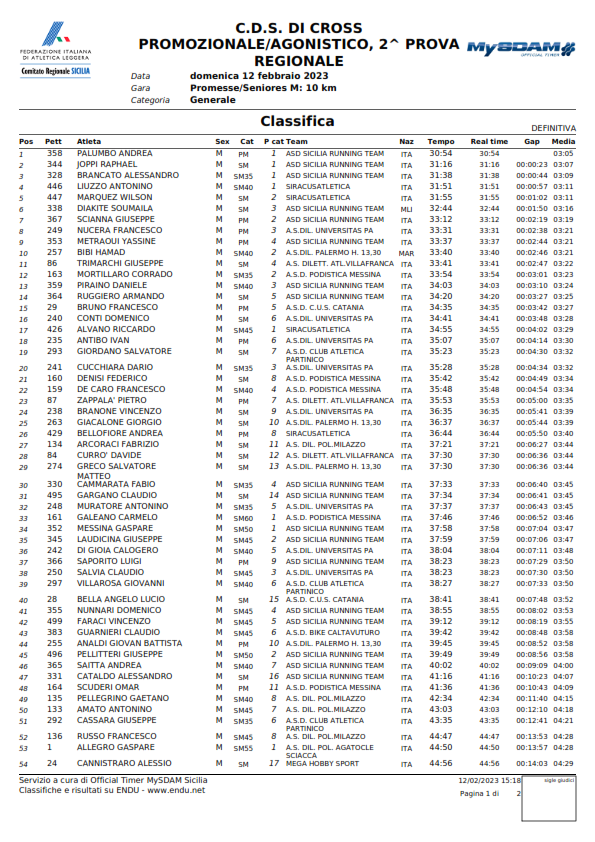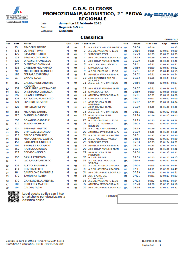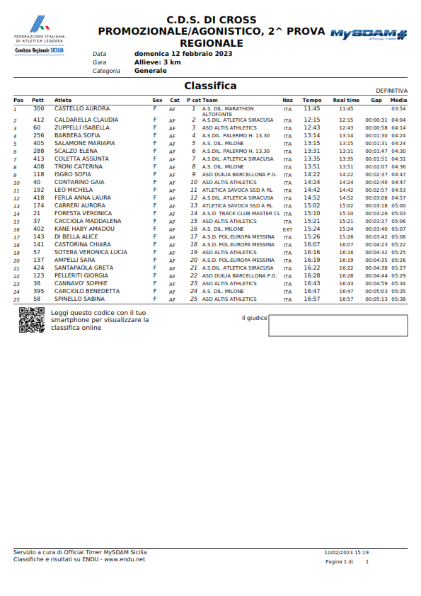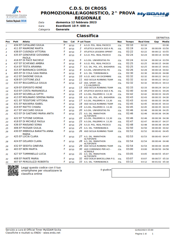 C.D.S. DI CROSS PROMOZIONALE/AGONISTICO, 2^ PROVA - Classifiche -