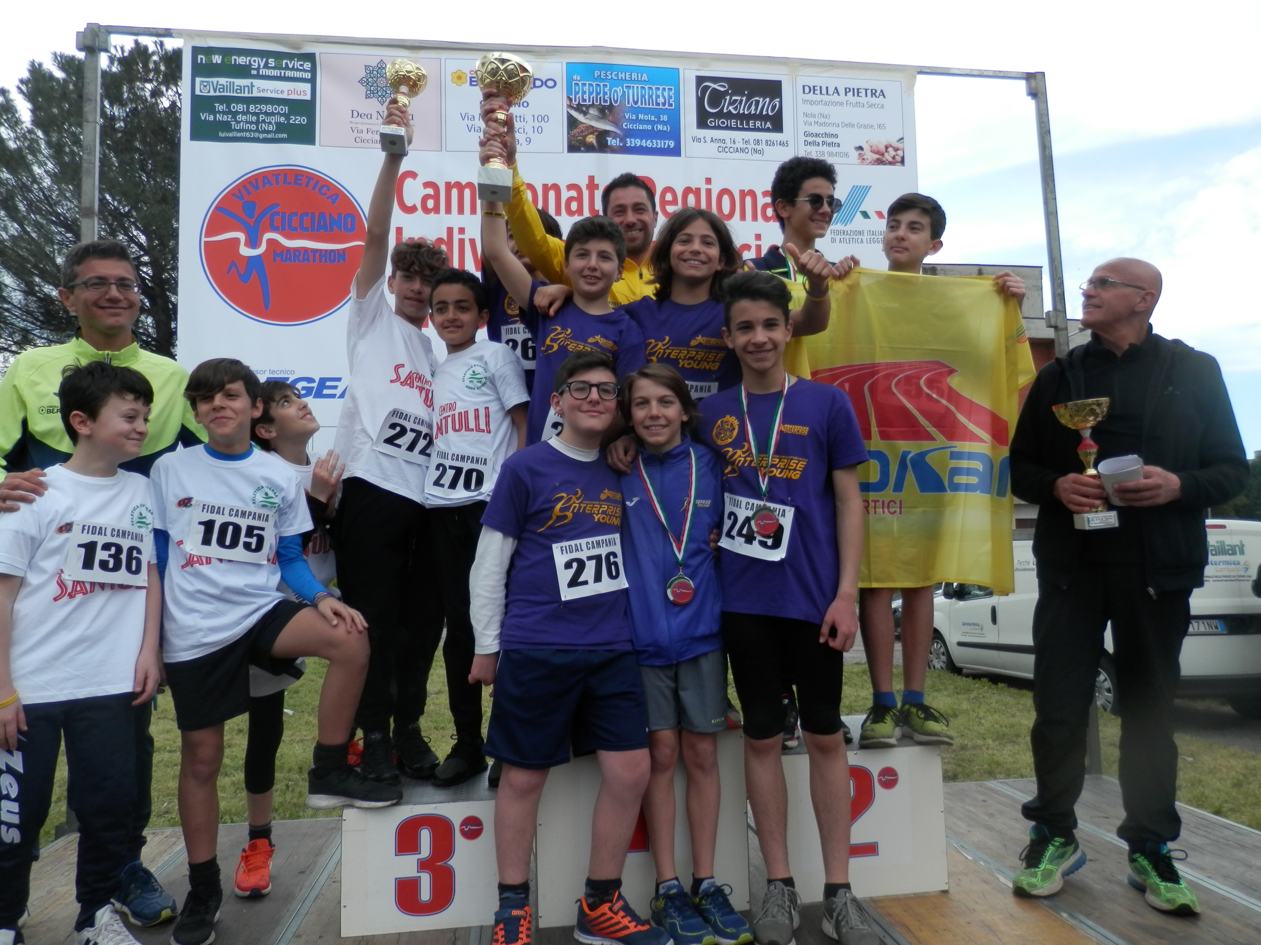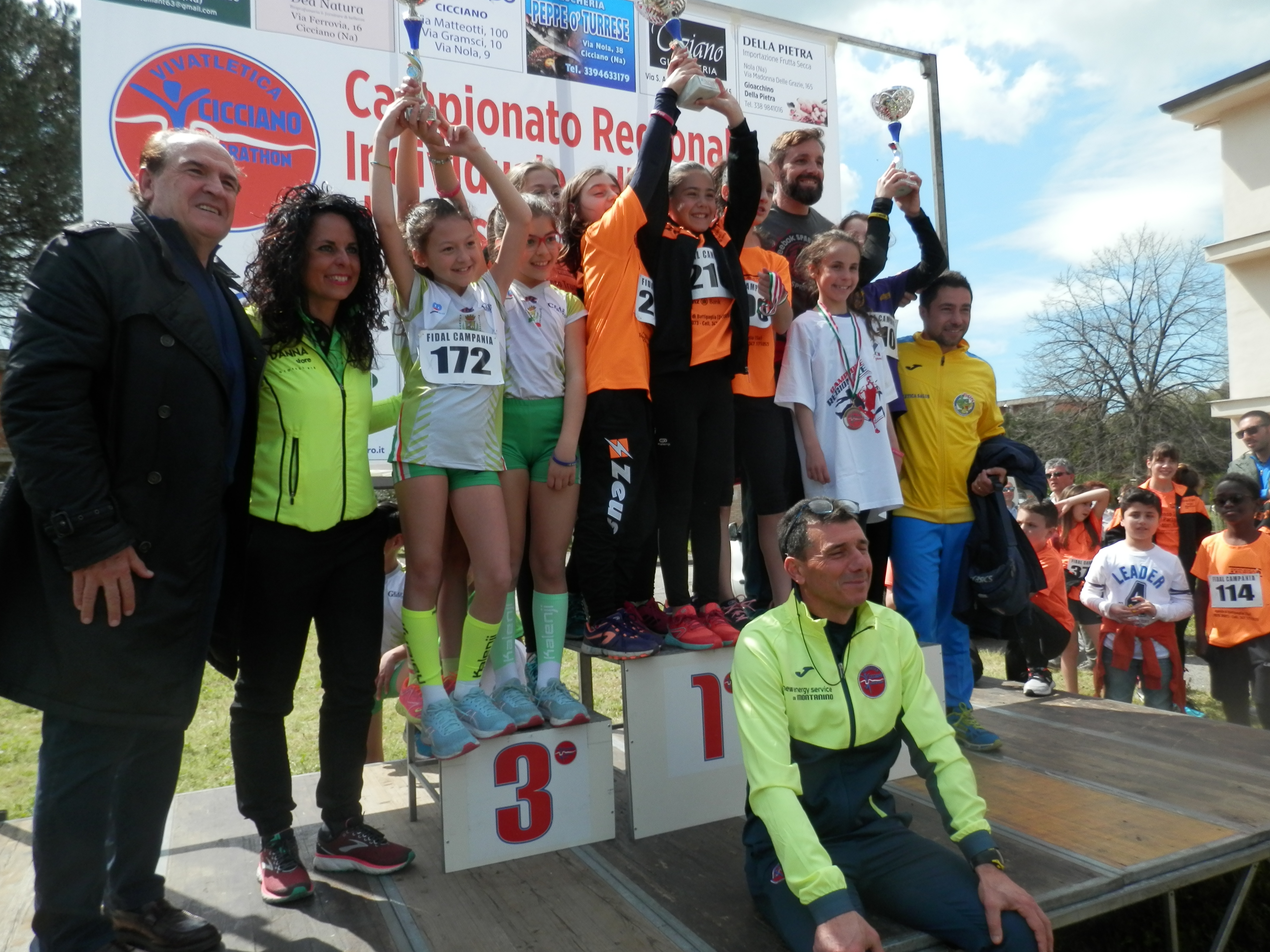 Tra le Ragazze(1000m) ha primeggiato Antonia Silvia Argenziano(Montemiletto Team Runnrs)che ha preceduto sul podio Maria Nuzzorillo(Arca Atletica Aversa) e Nike Cavallo dell'Ideatletica Aurora. Nella categoria Cadette(2000m) successo di Marco Gambardella(Hinna S.Antimo) che ha relegato al secondo posto Morad Adssoui(Arca Atletica Aversa)ed in terza posizione Pasquale Ciardi dell'Enterprise Young. Nella categoria Cadette(2000m)successo di Nadia Contino(Enterprise Young) che ha preceduto sul podio Elisa Trotta(Ideatletica Aurora) e Syria Golino dell'Atletica Marcianise. Nella classifica di società Cadetti successo del team Enterprise Young(p.131) che precede Arca Atletica Aversa(p.124) e Caivano Runners con 122 punti. Nella classifica di società Cadette si è classificato al primo posto Enterprise Young che con 137 punti prevale sul podio Atletica Marcianise(p.125) ed Hinna S.Antimo con 120 punti. Al primo posto tra i Ragazzi ancora un successo del team Enterprice Young che con 131 punti relega al secondo posto il Budokan Portici(p.119) ed in terza posizione Arca Atletica Aversa con 114 punti. Nella categoria Esordienti Maschile ha primeggiato l'Atletica Marcianise con 144 punti precedendo in classifica Enterprise Young(p.109) e Budokan Portici con 99 punti. Infine nella categoria Esordienti femminile si è classificato al primo posto Ideatletica Aurora che con 136 punti ha prevalso sul podio Enterprise Young(p.127) ed Atletica Marcianise con 109 punti.