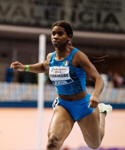 Prima maglia azzurra del 2023 per un’atleta di Assindustria Sport. E non si può certo dire che Hope Esekheigbe (foto Grana/Fidal), convocata in nazionale under 23 per i Campionati del Mediterraneo indoor di Valencia, non l’abbia onorata. La sprinter allenata da Emanuele Olivieri è salita sul terzo gradino del podio, correndo in 7”43 la finale dei 60, vinta dalla greca Polyniki Emmanouilidou in 7”37 sulla francese Ange Hilary Gode (7”42). Hope aveva vinto la sua batteria in 7”47, mentre in finale ha eguagliato il suo primato stagionale. L’anno inizia dunque nel migliore dei modi per questa giovane atleta padovana, nata in Italia da famiglia di origini nigeriane e in pista dal 2012, quando è stata tesserata da Assindustria Sport, che l’ha seguita passo dopo passo nella sua crescita agonistica e che l’ha portata a essere una promessa della velocità.