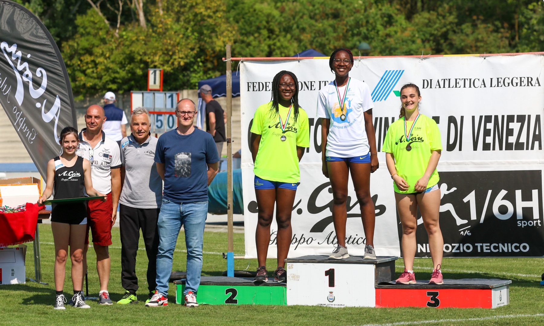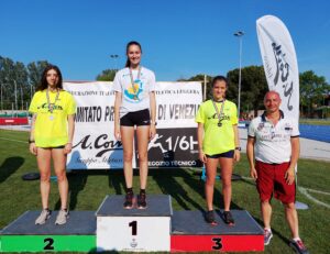 FEMMINILI. JUNIORES. 100 (-1.9): 1. Giulia Fongaro (Atl. Vicentina) 12”23 (12”21/-1.8 in batteria). 400: 1. Francesca Carta (Assindustria Sport) 1’00”31. 1500: 1. Agnese Carcano (Atl. Verona Asd Pindemonte) 4’38”79. 3000 siepi: 1. Ilaria Ballarin (Atl. Riviera del Brenta) 12’03”94. 100 hs (-1.5): 1. Elena Nessenzia (Atl. Riviera del Brenta) 14”69. Alto: 1. Petra Stizzoli (Atl. Verona Asd Pindemonte) e Costanza Crisanti (Trevisatletica) 1.60. Triplo: 1. Francesca Cason (VFGroup Atl. Santa Lucia) 10.99 (+1.1). Peso: 1. Tarè Miriam Bergamo (Assindustroa Sport) 11.30. Martello: 1. Vanessa Avogaro (Fondazione M. Bentegodi) 43.98.