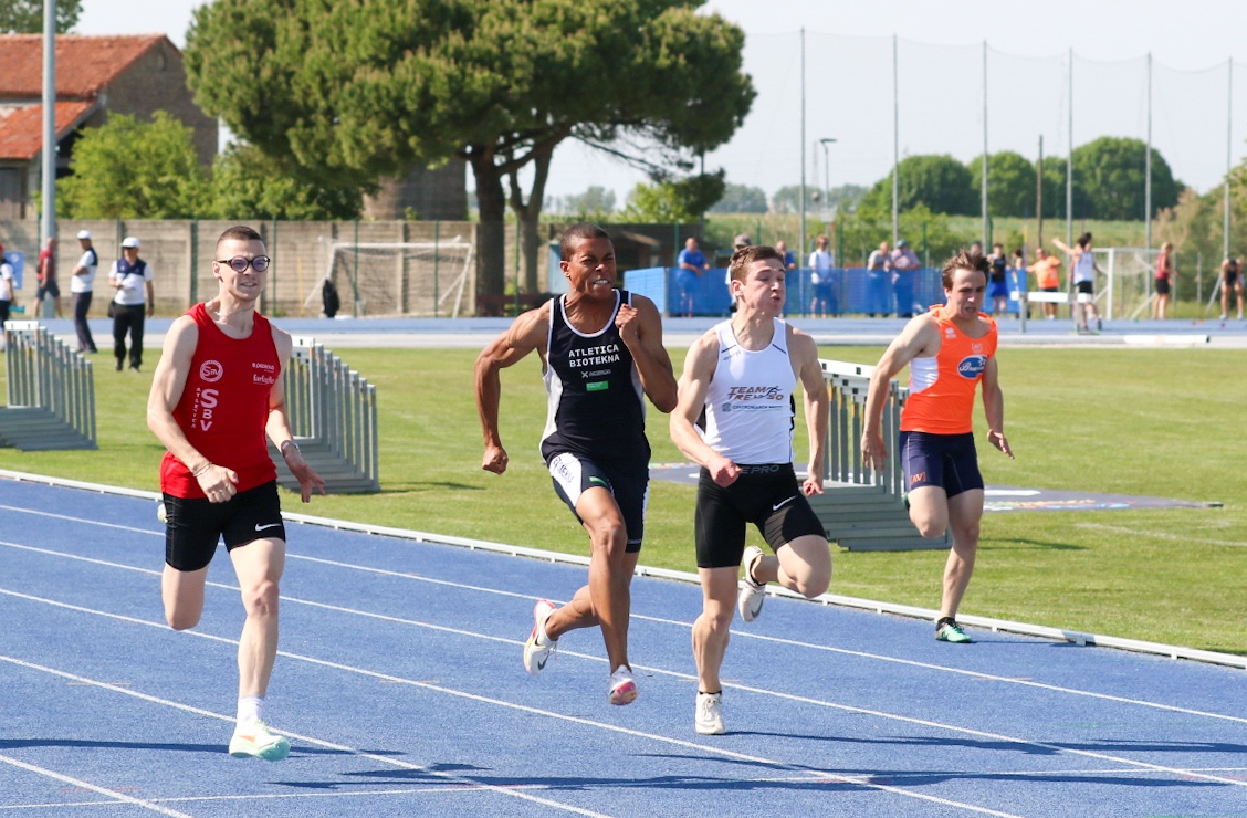 Brenta) nei 100 ostacoli (14”69, vento –1.5) e Agnese Carcano (Atl. Verona Asd Pindemonte), protagonista di una bella recita solitaria nei 1500 (4’38”79). Al maschile, conferma per lo junior Kristian Lazzaretto (Atl. Vicentina), sempre brillante nel giavellotto (61.74), e discreti risultati dall’asta con il 4.50 dello junior Carlo Alberto Scotton (Atl. Vis Abano) e il 4.30 a pari merito degli allievi Leonardo Bigotto (Trevisatletica) e Lorenzo Schiavon (Assindustria Sport). Poi un paio di belle prove veloci, nonostante il vento contrario che ha continuato a soffiare per tutto il pomeriggio sul rettilineo d’arrivo: merito dell’allievo Filippo Padovan (Atl. Vicentina) nei 100 (11”02, -2.5) e del coetaneo Giovanni Zuccon (Trevisatletica) nei 110 ostacoli (14”44, -1.8). Domani, dalle 14.10, la seconda giornata di gare.