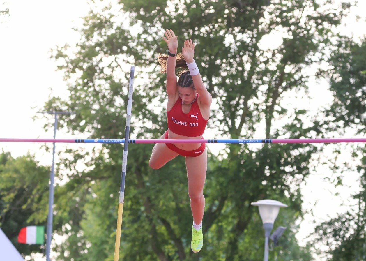 Caorle tricolore applaude i velocisti. La prima giornata dei Campionati Italiani Allievi, allo stadio Chiggiato, incorona la marchigiana Alice Pagliarini che vola nei 100 in 11”47, arrivando ad un soffio dalla miglior prestazione italiana under 18 che resiste da oltre un quarto di secolo (11”44 di Erica Marchetti nel 1997), anche se la prestazione della 17enne dell’Atletica Fano Techfem è statisticamente inficiata da un vento oltre i limiti (+2.3). Stessa sorte, al maschile, per Leo Oumar Domenis (Trieste Atletica): 10”54 per il velocista originario del Mali, 16 anni da compiere, ma brezza ancora fuori norma (+3.5). La prima medaglia del Veneto arriva, in conclusione di giornata, grazie ad Andrea Morgana Fogato, padovana del vivaio delle Fiamme Oro, che salta 3.60 nell’asta e sale così sul gradino più alto del podio al termine di una gara lunga e incerta, decisa da uno spareggio con Valentina Praticò (Fiamme Gialle Simoni). Per Andrea Morgana Fogato è anche il nuovo record personale, con un progresso di 5 centimetri rispetto alla misura con cui si era presentata in pedana a Caorle. La prima delle tre giornate di gara allo stadio Chiggiato regala al Veneto due finaliste nei 100 femminili, Giulia Signorini (Atl. Vicentina) e Maddalena Nardi (Atl. Verona Asd Pindemonte), rispettivamente quinta (12”01) e settima (12”23) nella gara vinta da Pagliarini con vento oltre i limiti. Valentino D’Andreta (Atl. Riviera del Brenta) è nono (primo nella finale B) in 10”71 ventoso (+2.5). Sesto posto del compagno di squadra Nicodemo Desidera nei 2000 siepi (6’08”54), dove al femminile la migliore delle venete è Sofia Cerchiaro (Fiamme Oro Padova), settima in 7’24”08. Thomas Lazzaretto (Atl. Vicentina) si piazza settimo nel martello (53.41). Sara Bernardinello (Atl. Vicentina) chiude la prima giornata dell’eptathlon al secondo posto. Mentre nel decathlon è provvisoriamente quinto Nicola Zogno (Atl. Vis Abano). Domani, sabato 24 giugno, dalle 9.15, la seconda giornata di gare.