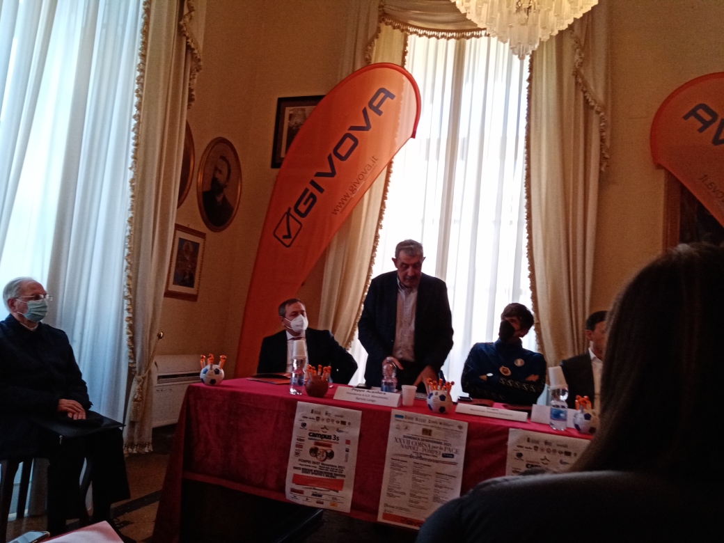 Al tavolo della conferenza lo sponsor ufficiale della manifestazione il Presidente del Givova Giovanni Acanfora che ha ringraziato l’amministrazione del Comune di Pompei e gli organizzatori della manifestazione che lega in maniera indissolubile lo sport e la pace. Nella Sala Consiliare del Comune di Pompei presente anche il Presidente dell’Associazione Sportforum Tommy Mandato del progetto Campus 3s(salutesportsodlieretà) per le visite mediche specialistiche e solidali.