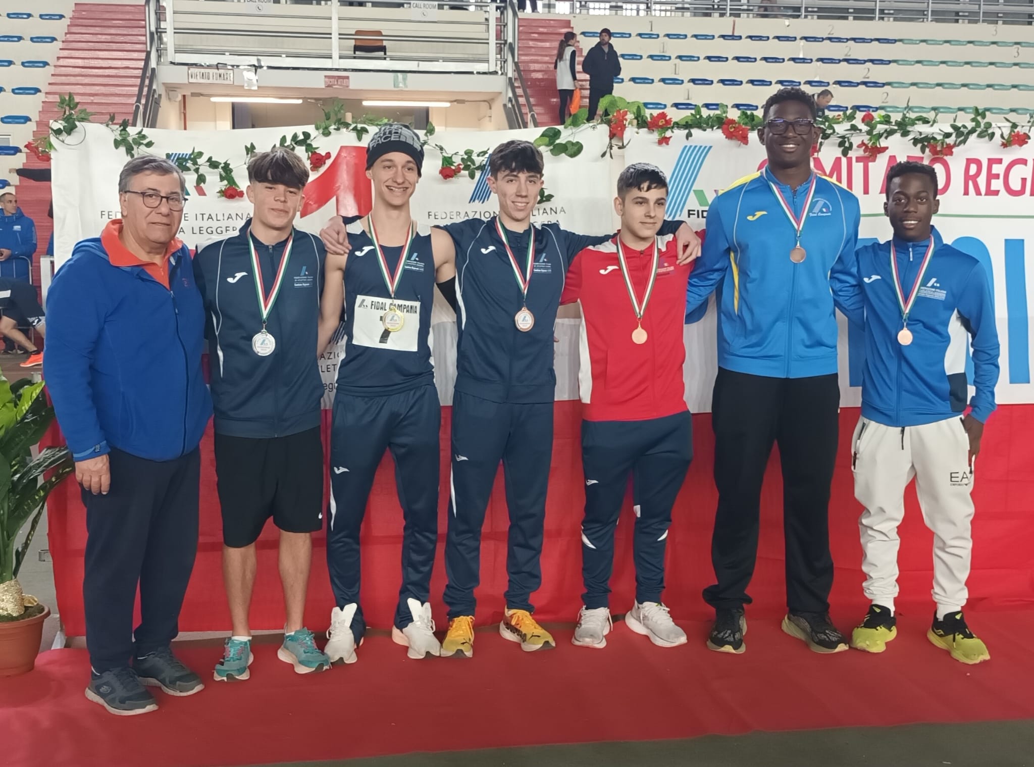 Trionfo partenopeo per la rappresentativa cadetti del Lazio allestita dal fiduciario Emilio De Bonis e accompagnata dai tecnici di struttura. Un sabato a tutta atletica al PalaVesuvio di Ponticelli teatro dell’edizione 2025 del Promoindoor, meeting riservato alle rappresentative Cadetti del centro sud Italia. Il meeting ha visto scendere in pista 140 atleti che hanno gareggiato nei 60 e 60h, 300, 1000 metri, marcia, staffette, salto in alto ed in lungo. L’anello di 160 metri della struttura napoletana, di recente tornata ad ospitare meeting di atletica leggera al coperto, ha visto impegnati gli atleti della categoria Cadetti (under 16) dei team Lazio, Campania, Molise, Puglia e Basilicata. La classifica generale combinata ha visto la vittoria della rappresentativa del Lazio con 126 punti, su Puglia 118 punti, Campania 111, Basilicata con 108 e Molise con 93.