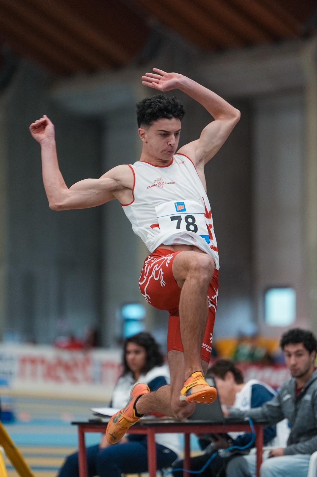 SALTI... D'ARGENTO - Appena il tempo di dare il via agli italiani ed ecco che nella seconda gara che assegna medaglie arriva uno splendido argento (come era accaduto nella stessa gara un anno fa) per mano di Matteo Sorci. L'alfiere dell'Atletica Perugia è protagonista di tre salti sopra i 7 metri con l'ultimo a 7.16 con il quale migliora il suo primato regionale allievi indoor ed eguaglia il record assoluto di Giancarlo Biscarini. Un salto che non gli permette di scavalcare Edoardo Borchi, anche lui protagonista di una bellissima serie con l'ultimo salto a 7.22 al termine di una sfida davvero entusiasmante.