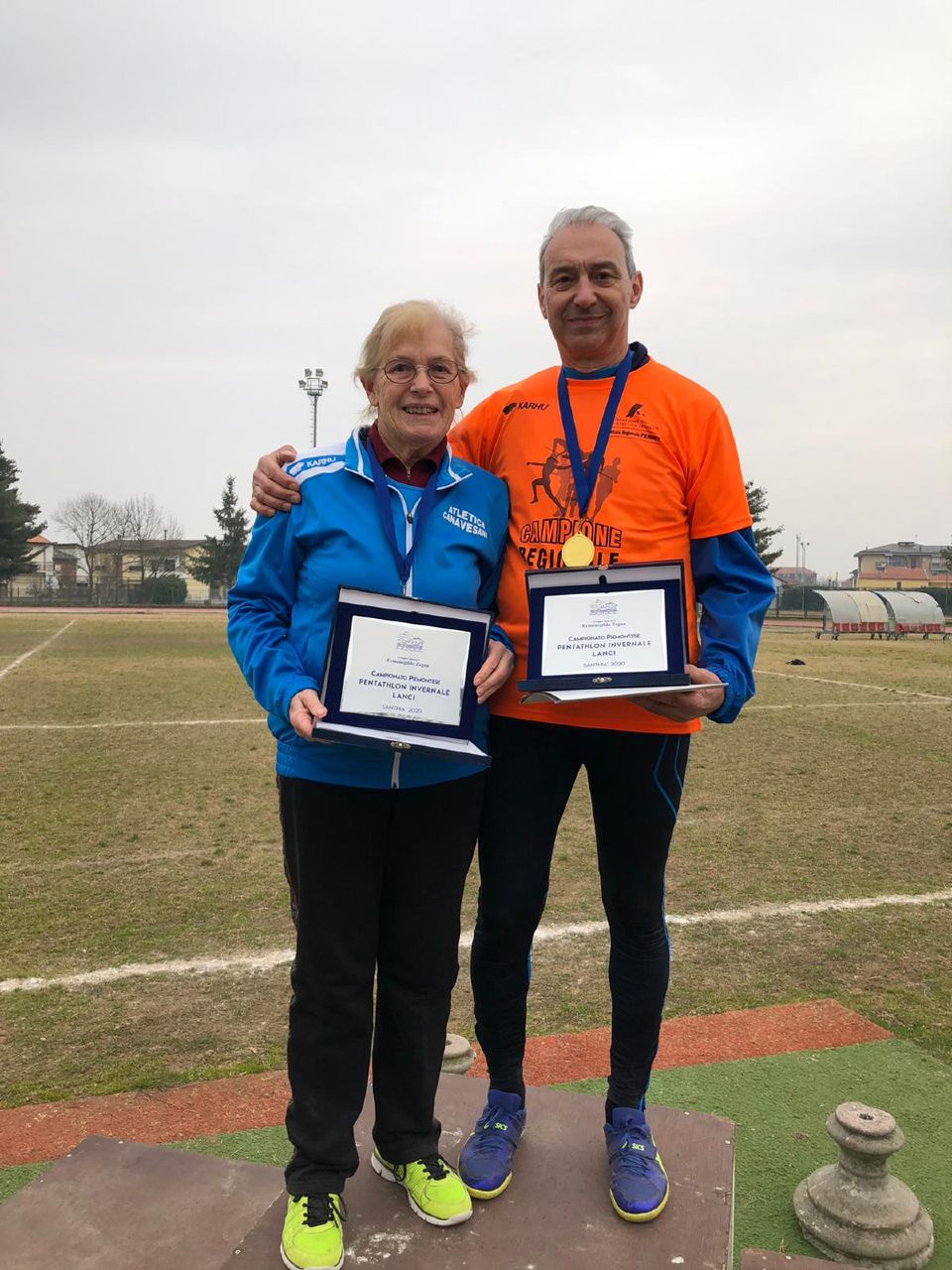 18 Febbraio 2020A Santhià nel Campionato piemontese invernale Pentathlon Lanci S35+ doppietta targata Atletica Canavesana.