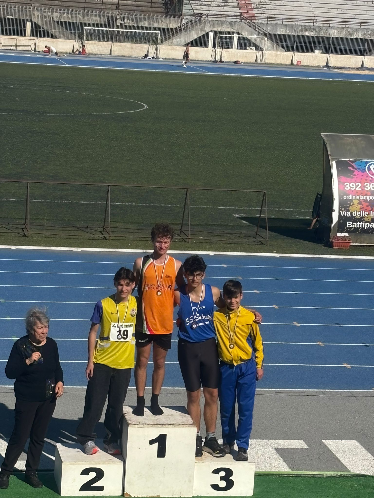 Napoli.- Un sabato pomeriggio 11 aprile allo Stadio Luigi Pastena di Battipaglia ha ospitato la Riunione regionale Cadetti - Allievi – Junior – Senior. Nelle categorie Assoluti M/F: Nei 100m primeggia Stefano Castaldo(Running Club Napoli) con il crono di 11”12 e tra le donne Christabel Elog Ifaluyi(Atletica Leggera Portici) con 12”79. Nel doppio giro di pista(800m) si impone Giovanni Pagliara(Enterprise Sport & Service) con il tempo di 2’02”05 e tra le donne Simona Belvedere(Atom thletic) con 2’30”16. Nel giro di pista(400m) al primo posto Giuseppe De Matteo(Running Club Napoli)con 49”69 e tra le donne Michela De Luna(Donatella Eboli Atletica) con 1’02”67. Nei 400hs femminile primeggia Serena D’Avino(Agropoli) con 1’04”95. Nella gare del Lungo maschile si impone Luca Annibale Boccacini(Aggropoli) con un balzo di 6,22. Nel Giavellotto assoluto primeggia Simone Cuciniello(Running Club Napoli) con 57,13 e tra gli allievi Luca Battisti(SS Salvatore) con 50,06; nel Giavellotto Juniores femminile si impone Silvia Filpi(Agropoli) con 19,50.