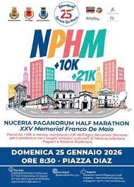 La 3^ ed. della Manifestazione Nazionale "NUCERIA PAGANORUM HALF MARATHON" organizzata dall'ASD Nocera Runners Folgore - SA608, in programma a Nocera Inferiore (Sa) il 25 gennaio p.v., ospiterà il CRI e CDS Assoluto di Maratonina.