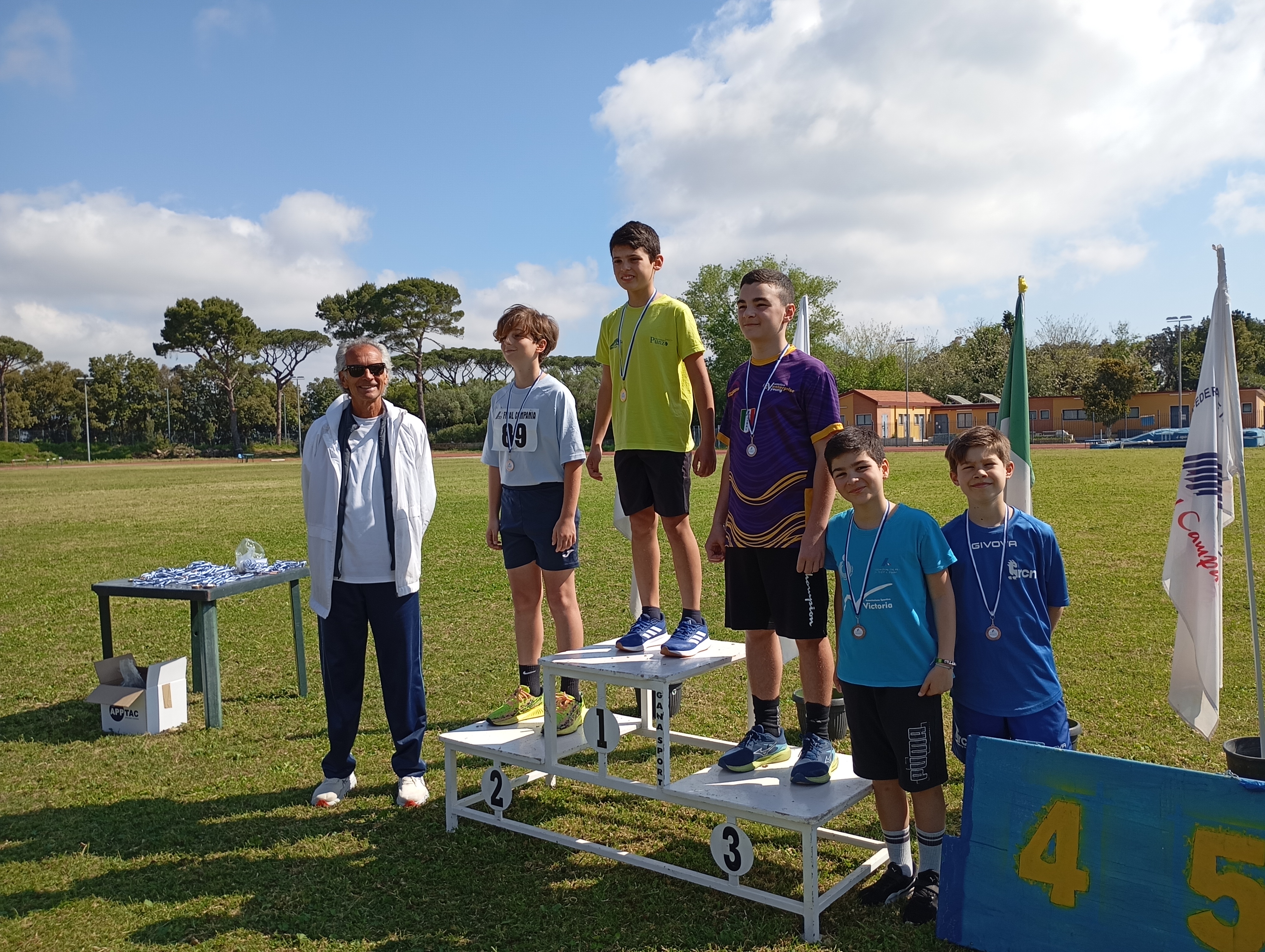Al primo posto nei 60m Francesco Aprea(Running Club Napoli)con il crono di 7”6; nel vortex primeggia Francesco Maresca(Victoria) con un buon lancio di 43,10 e nei 200hs di Martin Francesco Memoli(Amatori Atletica Napoli) con il crono di 1’36”0 e nella Marcia Km 2 Tommaso Bozzaotra(Victoria) con 12’50”6. Nella categoria Ragazze l team Enterprise Sport & Service si aggiudica i primi posti nei 1000m con Sara Luongo (3’24”8); nel Lungo con Ginevra Cappiello(3,76) e nei 200hs con Paola Bonardi con il nuovo record regionale di categoria crono di 30”3. Al primo posto nei 60m Leila Rippa(Amatori Atletica Napoli)con il crono di 8”6 e nel Vortex Ilaria Maria Iaccarino(Victoria)con lancio di 23,64 . Nelle gare di contorno Cadetti/e si sono registrate i primi posti nei 600m di Luigi Giannotti(Caivano Runners)con 1’30”6 e Maria Nicole Iazzetta(Enterprise Sport & Service)con 1’50”0. Nel Peso Cadetti/e si sono imposti rispettivamente Domenico Castiello(New Atletica Afragola) con 9,10 ed Eva Strino(Budokan Club Portici) con un getto di 11,80. Il finale della manifestazione con la partecipazione di circa 60 della categoria Esordienti 8 anni che si sono esibiti sui 40m che ha visto tutti premiati.
