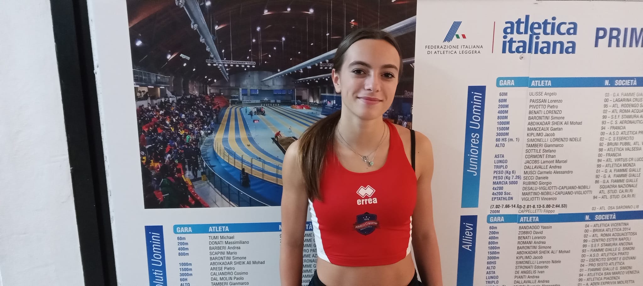 CALIGIANA, UN 400 DA SOGNO - Se quello della Castellani è un crono di valore assoluto non da meno è il fantastico tempo di Caterina Caligiana (Atletica Capanne) nei 400 metri. Già perchè la pupilla di Sauro Mencaroni, anche lei al primo anno in categoria, si conferma talento a tutto tondo e nel doppio giro di pista indoor toglie il primato niente meno che a Benedetta Ceccarelli che corse la distanza in 56.69. La Caligiana chiude nella prima serie in scia ad Angelica Gherco con uno strepitoso 53.91 (crono che peraltro è a 2 secondi dal record italiano di Valentina Vaccari).