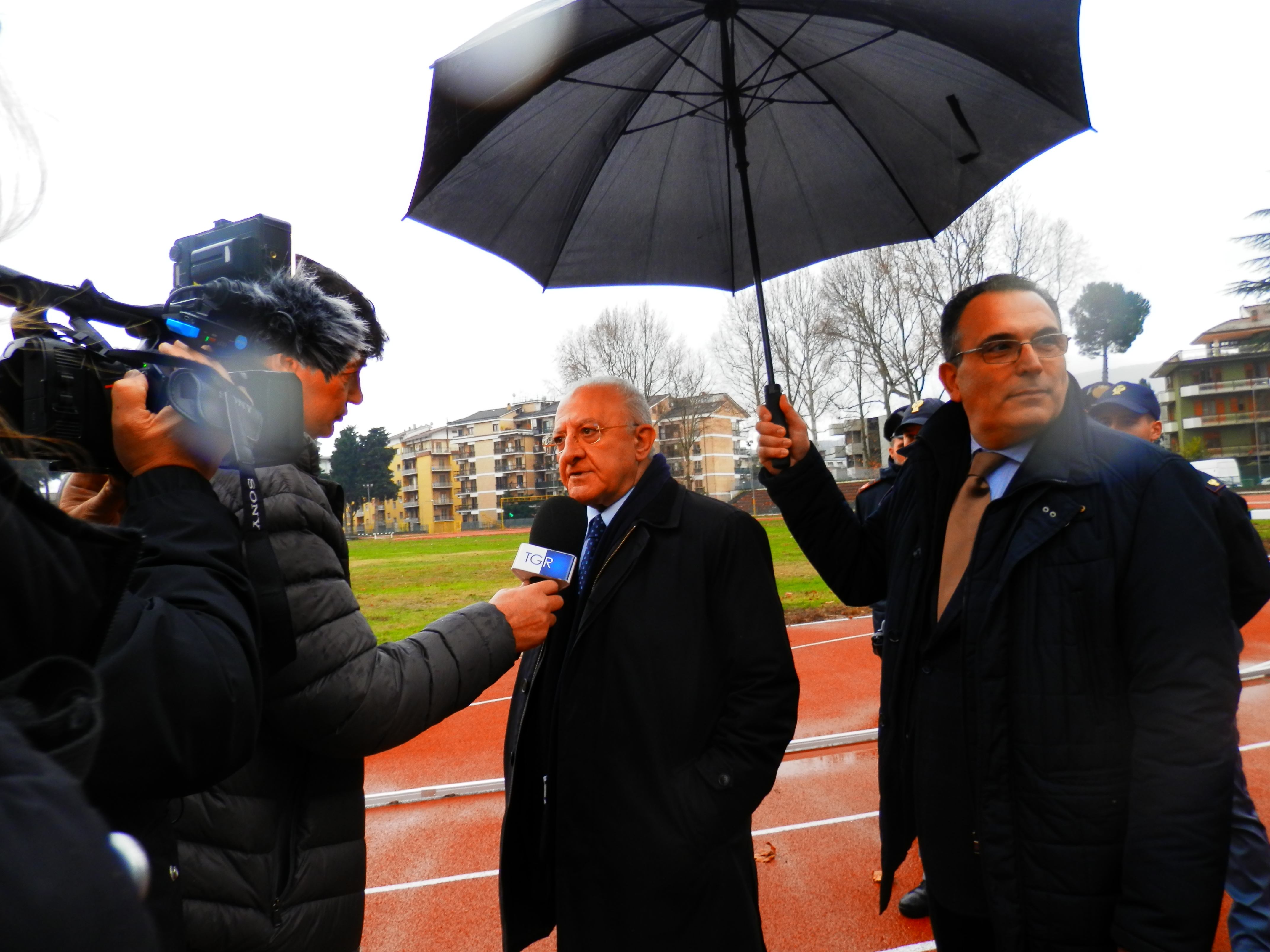 Avellino – La pioggia ha accolta l’inaugurazione del nuovo Campo Coni di Avellino. Nell’impianto avellinese presente il sindaco di Avellino, Gianluca Festa, il Governatore della Campania, Vincenzo De Luca. I due sono stati i protagonisti dell’inaugurazione avvenuta questa mattina, alla presenza di Sergio Roncelli, Presidente Coni Campania, Giuseppe Saviano, responsabile Coni provinciale, Gianluca Basile, Commissario straordinario Aru. Dopo il taglio del nastro c’è stata la benedizione di don Emilio Carbone. L’inaugurazione del Campo Coni si è svolta in un clima di festa, nonostante il tempo abbia provato a rovinare la manifestazione. Il nuovo impianto sportivo può rappresentare il fiore all’occhiello della città. Totalmente rifatto, dalla pista d’atletica agli spogliatoi. Il vecchio impianto è solo un ricordo ormai. – ricorda il Sindaco