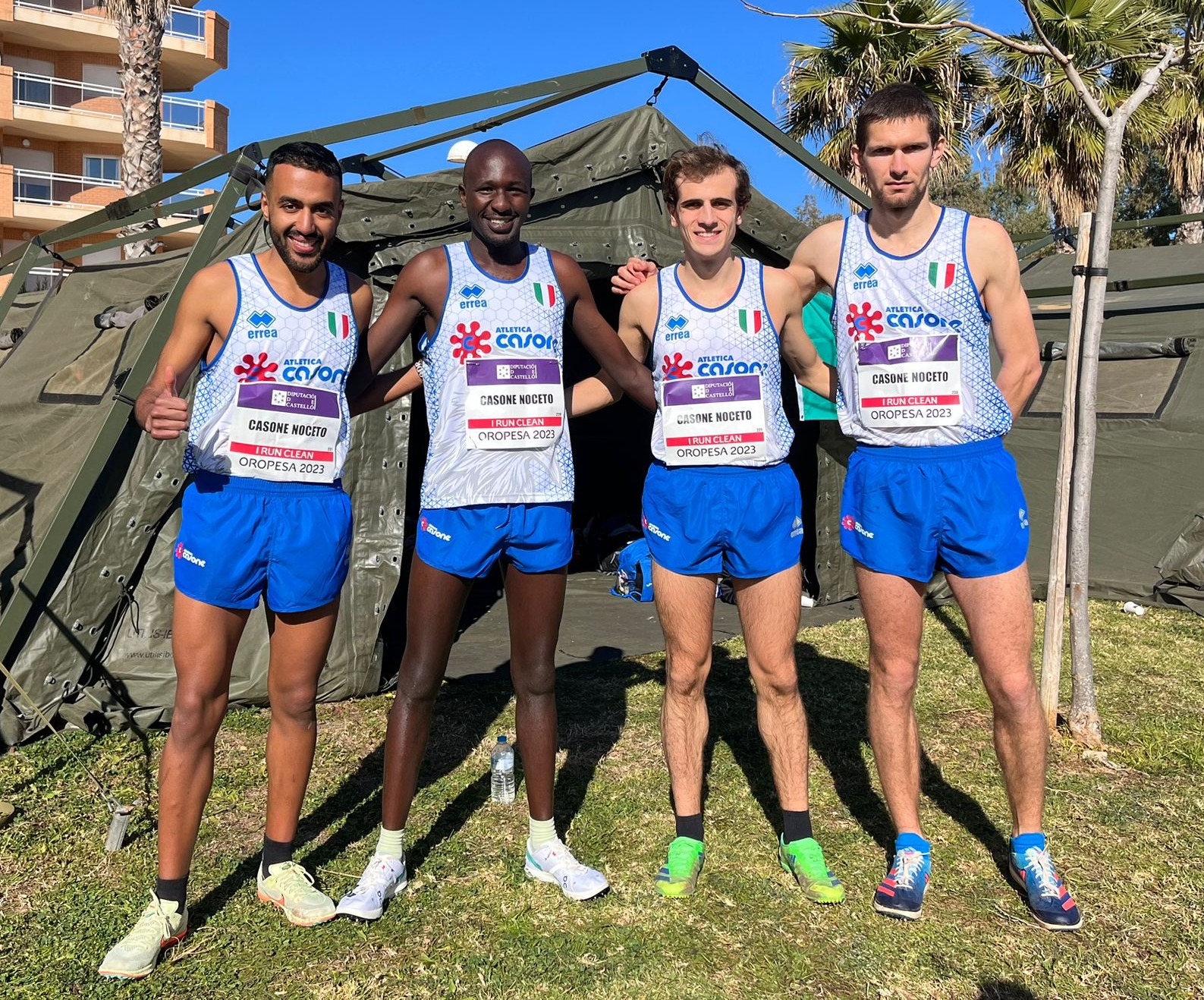 05 Febbraio 2023È di nuovo sul podio l’Atletica Casone Noceto nella Coppa Europa per club di cross, per la terza edizione consecutiva. In Spagna, a Oropesa del Mar, il team dei campioni d’Italia conferma il terzo posto dell’anno scorso nella gara senior maschile, al termine di una sfida molto combattuta. La squadra emiliana chiude con 32 punti, stesso score dei portoghesi del Benfica Lisbona che però sono quarti per il peggior piazzamento del terzo atleta. Vincono i padroni di casa spagnoli del Playas de Castellon (12) davanti allo Sporting Lisbona (30). Nella gara individuale ripete il piazzamento della passata stagione anche l’ugandese Oscar Chelimo, secondo in maglia Casone Noceto con 24:03 sui 9,1 chilometri, ma sono fondamentali anche i risultati del piemontese Italo Quazzola, dodicesimo in 24:49 recuperando diverse posizioni nel finale, e del lombardo Luca Alfieri, al 18esimo posto con 25:17 nella volata con il portoghese Duarte Gomes (Benfica, 19esimo in 25:18) che si rivela decisiva per la classifica a squadre, poi 57esimo Badr Jaafari (26:56). Prosegue così la serie di piazzamenti sul podio, iniziata con il secondo posto del 2019 per la società della provincia di Parma che ha conquistato gli ultimi quattro titoli tricolori nella campestre. Si impone ancora il burundese Rodrigue Kwizera (Playas de Castellon, 23:55), terzo il keniano Reuben Longosiwa (Benfica, 24:18) sul percorso nella località balneare della Comunità Valenciana, con tratti sulla sabbia e in spiaggia, in una mattinata di sole. Quindicesima l’altra formazione italiana, il Gp Parco Alpi Apuane (129 punti) con Omar Bouamer (31° in 25:47), Lorenzo Brunier (35° in 25:53) e Alessio Terrasi (63° in 27:16) mentre Nicolò Bedini perde una scarpa dopo un chilometro e non completa la prova.