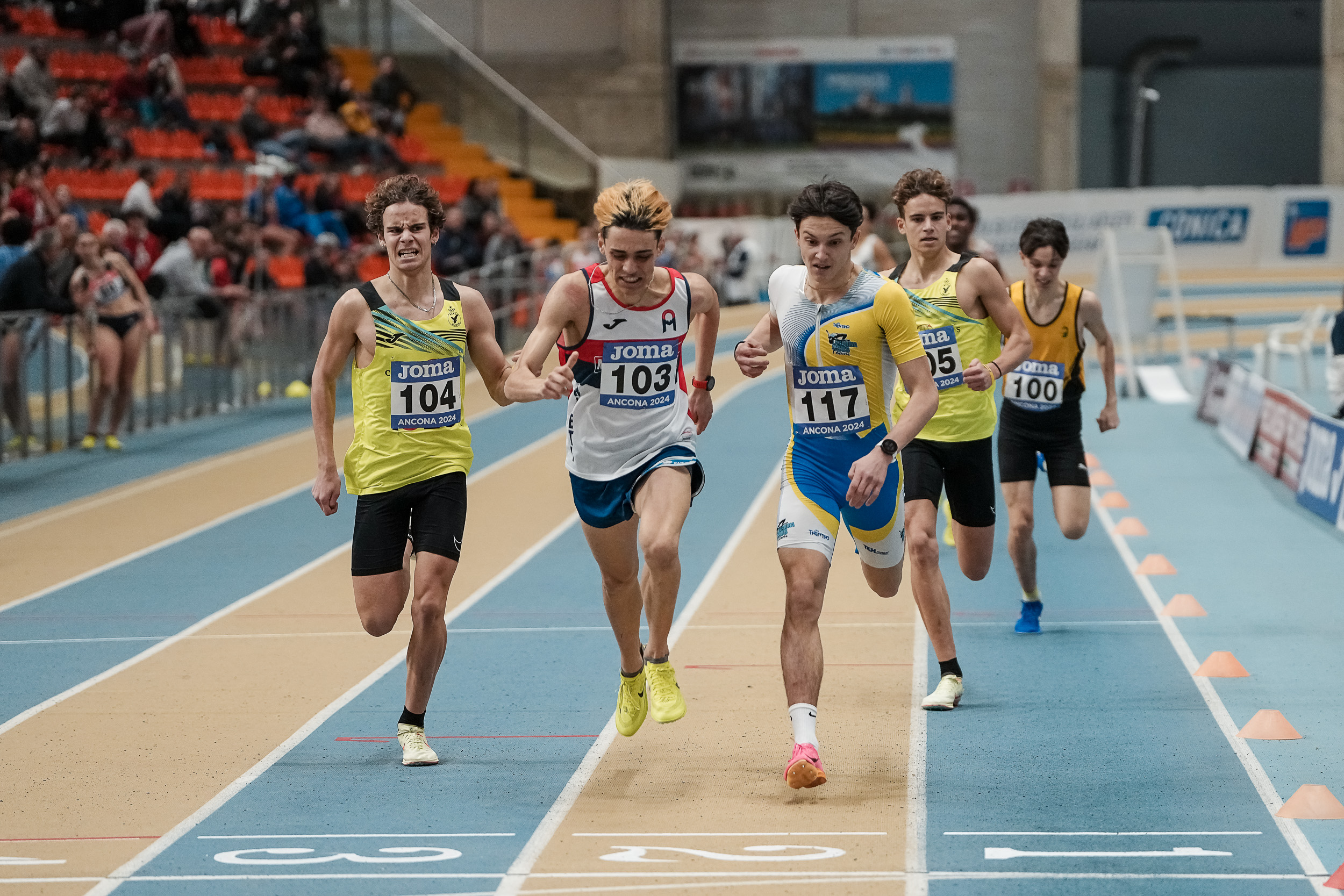Volata d’argento per Alessandro Moser negli 800 metri metri. Il valsuganotto gialloblù è nel quartetto che si gioca il titolo isnieme al laziale Valerio Ciaramella e ai gemelli siciliani Marco e Luca Coppola. Lo spunto dell’allievo di Claudio Pedri sembra essere quello giusto ma sulla linea del traguardo a spuntarla è Ciaramella in 1’55”17 con soli sette centesimi di margine sul trentino (1’55”24) con i Coppola a giocarsi il bronzo.