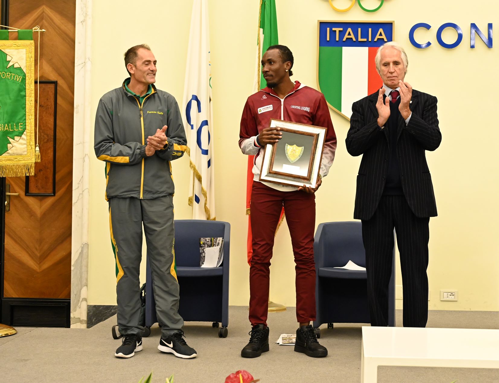 Più direttamente legati all’atletica i premi “compagni di viaggio” a Yupun Abeykoon (Nissolino Sport), velocista cingalese che, allenato dal tecnico gialloverde ed ex quattrocentista Claudio Licciardello, durante la stagione ha vinto la medaglia di bronzo ai Giochi del Commonwealth dopo aver corso il quinto tempo di sempre in Asia sui 100 (9.96); e ad Andy Diaz Hernandez (Libertas Unicusano Livorno), triplista cubano e rifugiato politico che, seguito dai tecnici Fiamme Gialle Andrea Matarazzo e Fabrizio Donato (plurimedagliato e detentore dei record nazionali indoor e outdoor di triplo), ha vinto la Diamond League, vivendo e allenandosi nella sede delle Fiamme Gialle di Castelporziano.