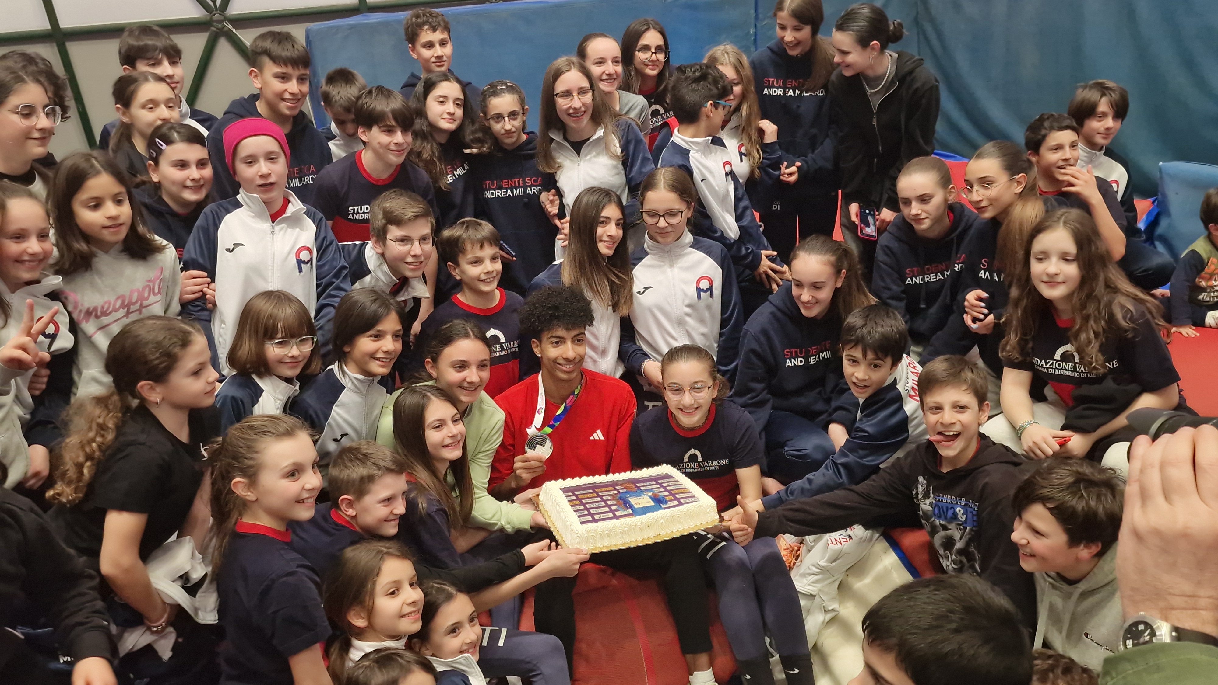 "Mattia, Mattia" il grido di centinaia di piccole atlete e piccoli atleti che poi hanno letteralmente assaltato il lunghista argento mondiale di Glasgow, che ha nel mirino l'8,47 dell'amico e concittadino Andrew Howe. Selfie, autografi, abbracci, richiesta di toccare la scintillante medaglia argentata. E poi una foto tutti insieme a una torta gigante con la foto della premiazione in Scozia dopo il trionfo di sabato scorso (8,22 come il greco Tentoglu, vittorioso solo per la seconda misura, 8,19). Ad accogliere Furlani anche l'assessore allo Sport e vicesindaco Chiara Mestichelli, oltre ai vertici della Studentesca Milardi.