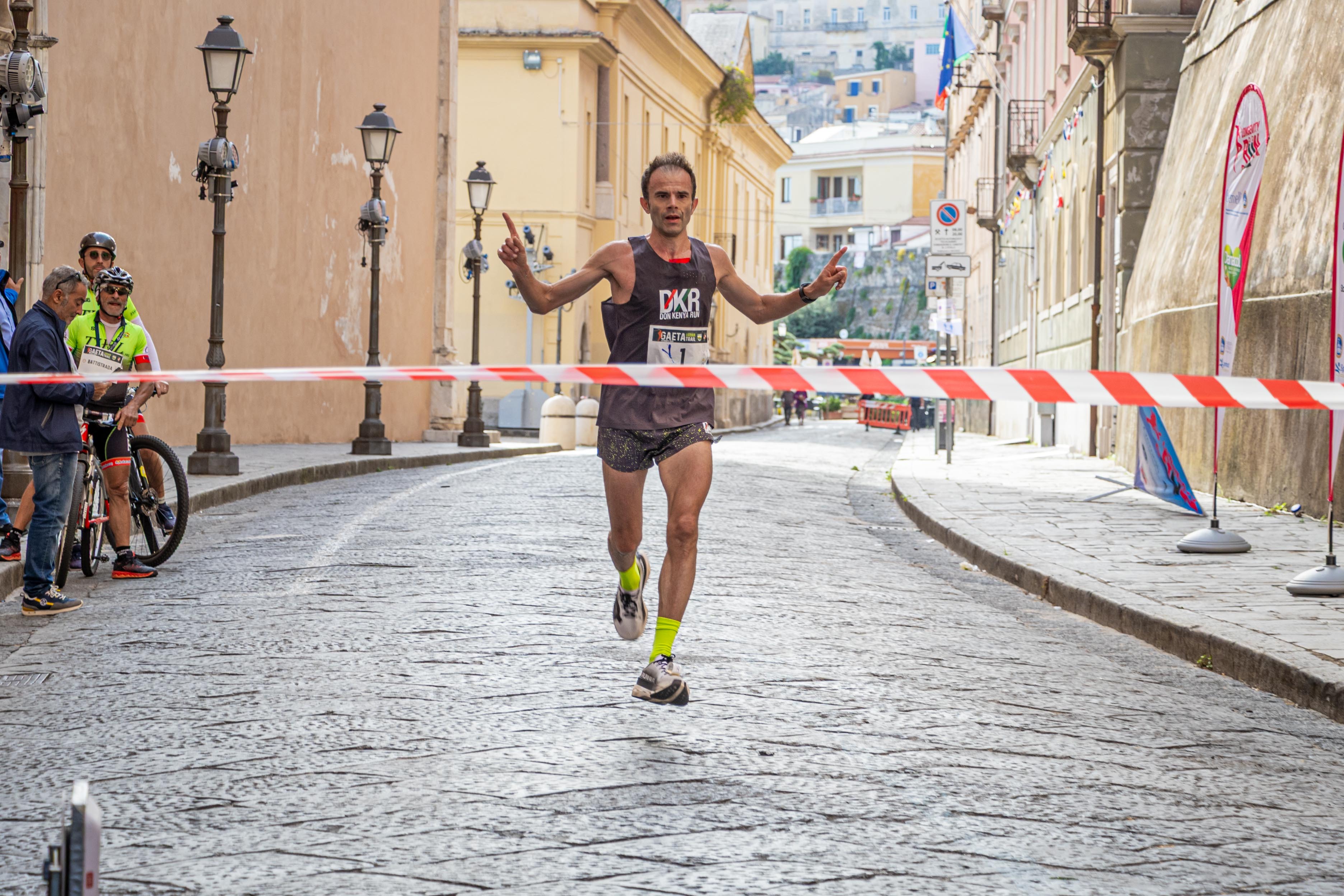 LA SINTESI SUGGESTIVA DEL PERCORSO - Dalla partenza gli atleti hanno percorso un primo chilometro pianeggiante sulle strade del centro storico fino al Duomo Cattedrale di Sant'Erasmo, poi un paio di passaggi tra scalinate e vicoli di Gaeta Medievale alta fino ai castelli Aragonese e Angioino, e quindi salita su Monte Orlando dal versante Nord Est. Dopo lo scollinamento, in discesa restando nel parco Riviera di Ulisse fino al Santuario della S.S. Trinità, per poi risalire ancora transitando sui sentieri delle falesie a picco sul mare fino alla punzonatura sopra il Mausoleo di epoca romana del console Lucio Munazio Planco dal versante Sud Ovest. Gli atleti hanno poi ripercorso in discesa il versante Nord Est a ritroso fino a sbucare sul mare del Golfo di Gaeta a Punta Stendardo. Da qui ultimo Km attraverso Gaeta Medievale bassa fino all'arrivo di Via Annunziata.