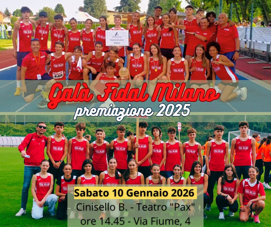 Sabato 10 gennaio 2026 si svolgerà il Galà di fine stagione, la grande festa dell'atletica giovanile milanese, l'ideale passaggio di testimone tra la stagione su pista 2025 e quella del nuovo anno.