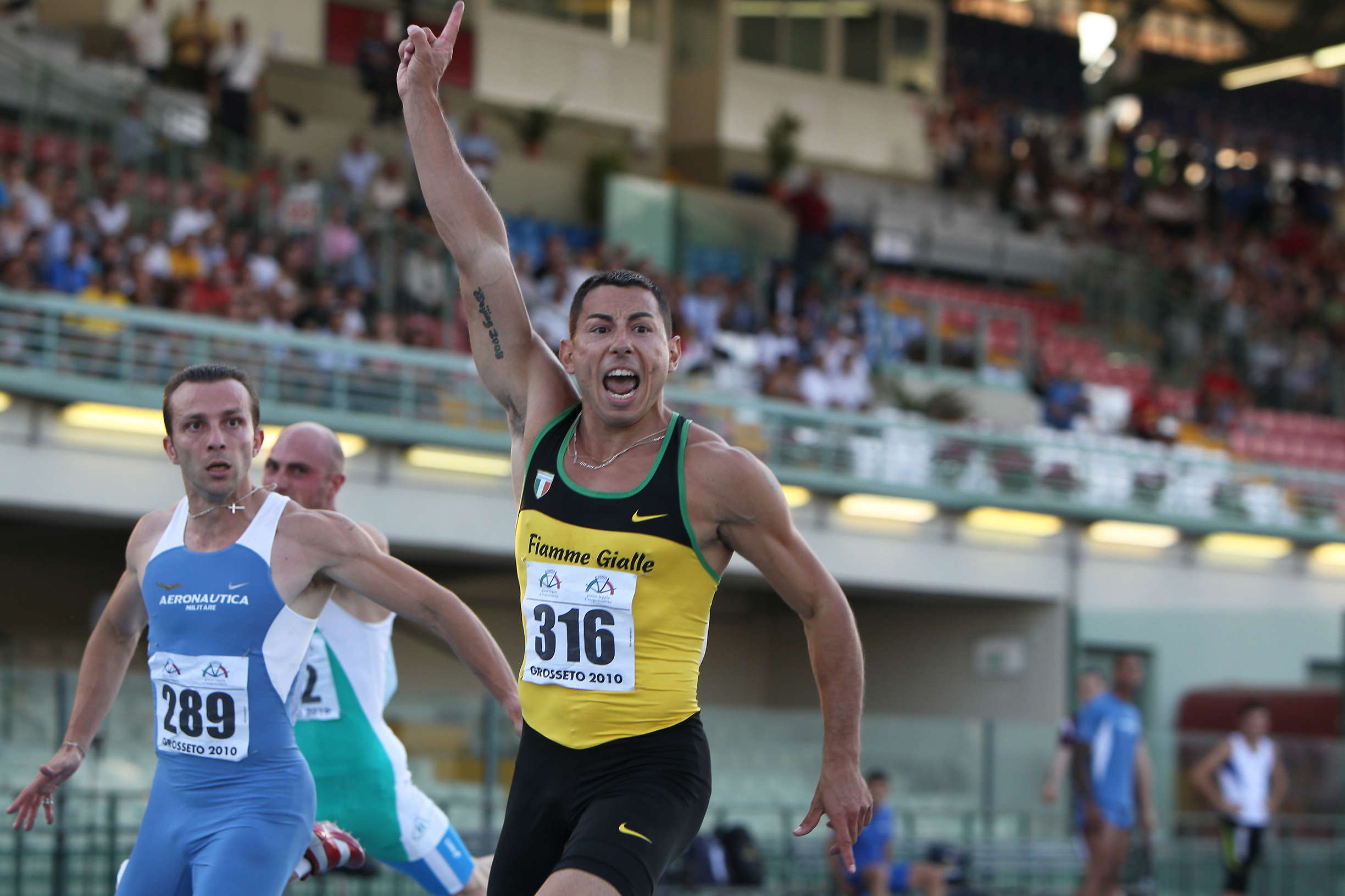 Pass per Helsinki (10.28 il minimo) raggiunto anche dallo sprinter Simone Collio (Fiamme Gialle) vincitore in 10.27 (+0.9) con il 10.35 del compagno di club, Fabio Cerutti. In batteria avevano rispettivamente corso in 10.35 e 10.36 (-0.2). Niente da fare, invece, per Andrew Howe (Aeronautica) che, all'esordio stagionale nei 200 metri, dopo metà gara in testa, è stato costretto a fermarsi all'uscita della curva a causa di un fastidio ad una coscia, arrivando al traguardo camminando. 21.12 (+1.6) per Davide Manenti. Il più veloce sul mezzo giro di pista è stato il greco, campione europeo under 23 in carica, Likourgos Tsakonas che con 20.52 (+0.3) ha messo in fila il britannico Ellington (20.55) e il ventenne francese Vicaut, 20.67. Nella quarta serie, si fa notare il 20.99 (PB di 32 centesimi) controvento (-1.3) di Fabio Squillace (Atl. Riccardi), mentre nei 400hs maschili 50.60 del finanziere Leonardo Capotosti.