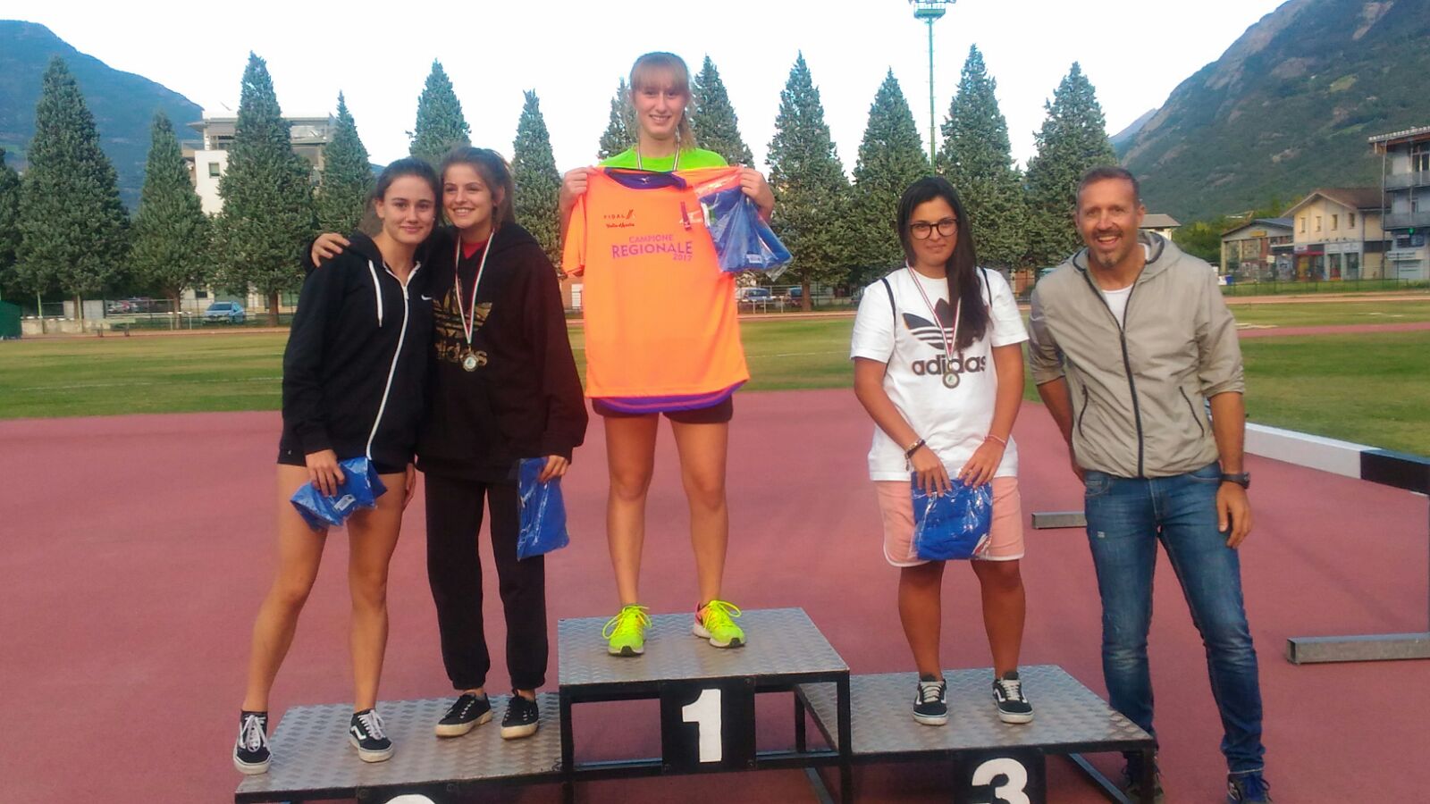 Nella categoria Master femminile dodici le partecipanti che hanno concluso il pokerissimo di cinque prove, peso, disco giavellotto, martello e martellone, di cui quattro tesserate per il club organizzatore. Secondo posto assoluto e titolo valdostano Master SF 65 per Rossella Bardi della Calvesi con 2696 punti totale maturato grazie alle singole prestazioni (peso 6m23, disco 20m26, giavellotto 8m59, martello 24m70, martellone 8m81). Sesta posizione assoluta e titolo rossonero Master SF80 per Maria Luigia Belletti (Calvesi) con 2246 punti (peso 5m58, disco 12m43, giavellotto 9m26, martello 10m58, martellone 5m49. Maglia di campione regionale anche per il presidente del club organizzatore, Liana Calvesi che si è piazzata in 11esima posizione, prima valdostana tra le Master SF70 con 1839 punti (peso 4m88, disco 12m76, giavellotto 6m08, martello 8m73, martellone 4m63); in seconda posizione Marijke Doornheim che di punti ne ha collezionati 1416 (peso 4m64, disco 10m62, giavellotto 6m08, martello 8m73, martellone 4m63).