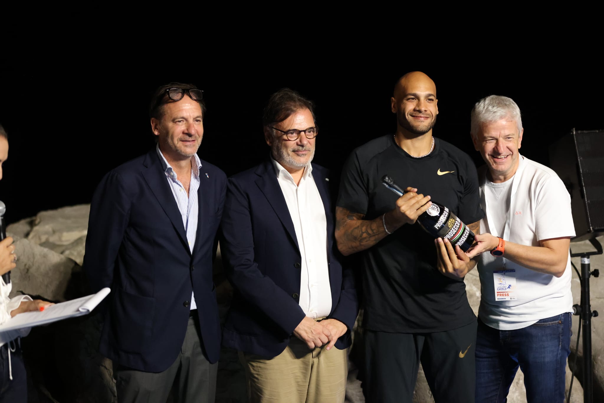 Con Jacobs la passerella è anche per l’altro campione olimpico della staffetta Lorenzo Patta (Fiamme Gialle) e per i giovani Matteo Melluzzo (Fiamme Gialle) e Alessio Faggin (Fiamme Oro). Nella gara-show voluta dal Comune di Caorle e dalla Regione Veneto, il palcoscenico è anche per la stella paralimpica Ambra Sabatini (Fiamme Gialle) che si esibisce insieme alle altre giovanissime Giuliana Chiara Filippi (Atletica Rotaliana) ed Alice Maule (Gs Alpini Vicenza). Ed è festa anche per le nuove leve delle Fiamme Oro che dopo l’incontro del pomeriggio allo stadio Chiggiato, in serata vivono l’esperienza fantastica di una staffetta insieme a Jacobs and co. Staffetta è anche al microfono, con tanti ospiti che si alternano, dal sindaco di Caorle Marco Sarto, alla primatista italiana dei 100 Manuela Levorato, ai campioni della ginnastica e del ciclismo Igor Cassina e Alessandro Ballan, al presidente della FIDAL Stefano Mei che sottolinea il significato dell’evento: “Serate come questa avvicinano i campioni alla gente e restituiscono il senso dello sport - le parole del numero uno federale - Marcell, ma anche Gimbo e gli altri medagliati, sono ragazzi disponibili e veri esempi per i giovani: è bello che l’atletica ogni tanto esca dagli stadi. Con la pandemia abbiamo riscoperto la valenza sociale del nostro sport e mi piace pensare che i tantissimi giovani avviati all’atletica dopo Tokyo siano la generazione Brisbane, e possano sognare le Olimpiadi del 2032”.