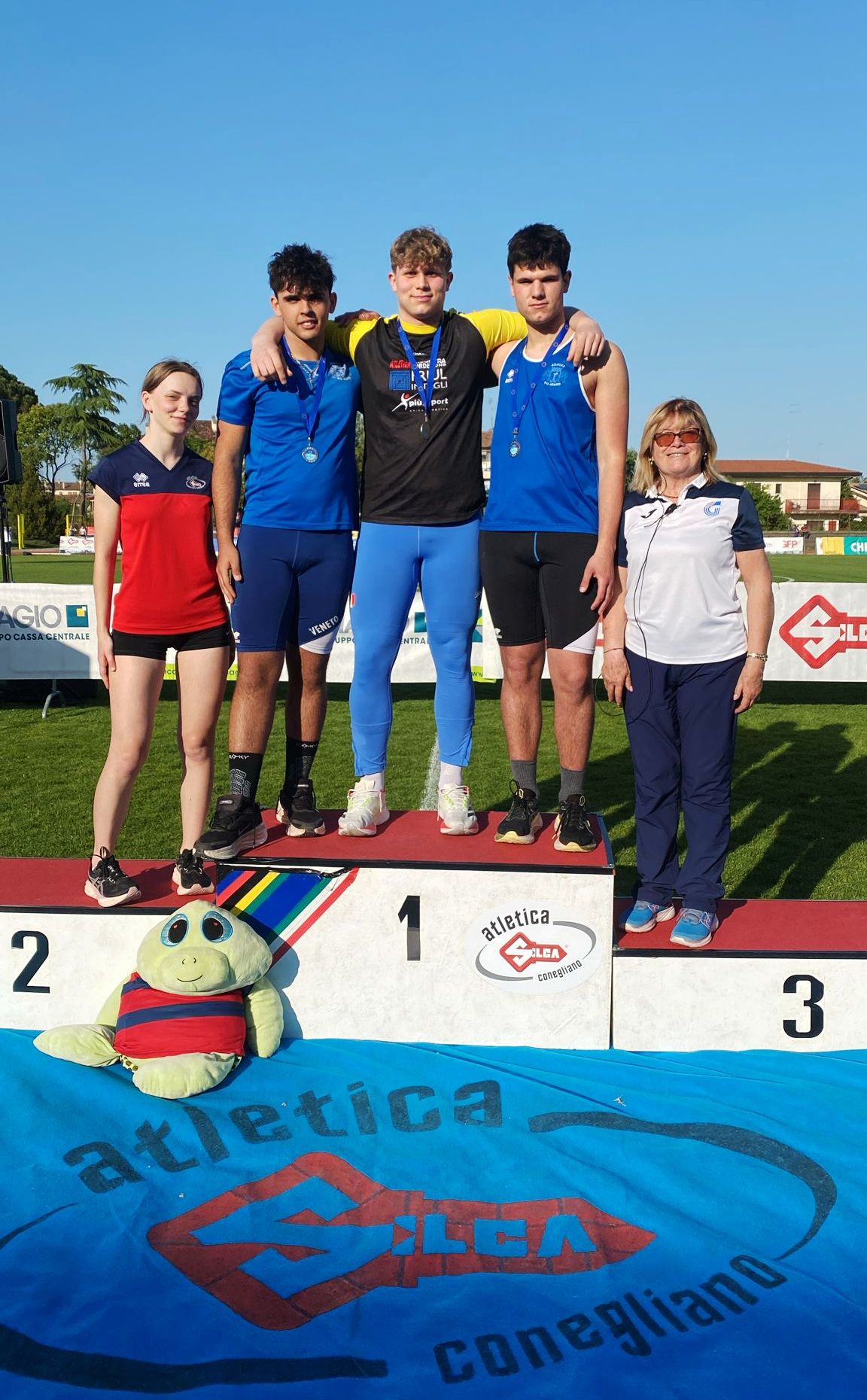 Lanci e corse impreziosiscono il pomeriggio di gare dello Junior Meeting - Banca Prealpi SanBiagio organizzato dal Gruppo Giovani di Atletica Silca Conegliano guidato da Emily Dutton e Jessica Costalonga. Allo stadio comunale Soldan di Conegliano (TV) sale in cattedra l’allievo pordenonese Antony Del Pioluogo (Atl. Brugnera PN Friulintagli) che lancia il peso a 19.72, migliorando di 69 centimetri il personale outdoor dopo il 20.10 (miglior prestazione italiana di categoria) siglato in sala a febbraio. In pedana, progressi anche per lo junior Marco Badin (Atl. Lib. Sanp), arrivato a 63.14 nel giavellotto, e per il coetaneo Spartaco Cattapan (Ga Aristide Coin Venezia 1949), per la prima volta oltre i 60 metri nel martello (60.08). Nei 1500 vinti con il personale (4’24”44) da Giulia Menegale (Atl. Silca Conegliano) significativo miglioramento per le gemelle Margherita e Beatrice Vedovato (Atl. Mogliano), ancora juniores, scese rispettivamente a 4’25”55 e 4’28”19. La cadetta Alice Maino (Asi Atl. Breganze) vola negli 80 (10”05). Mentre, in chiusura di serata, il maratoneta Giacomo Esposito (Atl. San Biagio) si aggiudica i 3000 in 8’26”82. Oltre 900 i partecipanti. “Il meeting è stato riproposto per la 25esima volta ed è più in forma che mai, come dimostrano anche i numeri di partecipazione – commenta il presidente di Fidal Veneto, Sergio Baldo -. Mi piace molto l’idea di mettere i giovani dietro le quinte, un’esperienza unica e che sarebbe da imitare proprio per la valenza formativa. Atletica Silca Conegliano si conferma organizzatore d’eccellenza, come ha dimostrato anche lo scorso anno quando è stata alla regia del Challenge, la seconda gara più importante a livello nazionale”. Emozionate e affaticate presidente e vicepresidente del Gruppo Giovani di Atletica Silca Conegliano, Emily Dutton e Jessica Costalonga, che hanno coordinato una quarantina di coetanei che si sono impegnati sul campo. “E’ stato un bel lavoro di squadra, i nostri compagni di squadra sono stati molto collaborativi – riferiscono le due ragazze - abbiamo potuto capire tutto il lavoro che c’è dietro all’organizzazione di un evento di atletica. E’ stata un’esperienza molto interessante e utile, grazie anche al sostegno dello staff dirigenziale della società”.