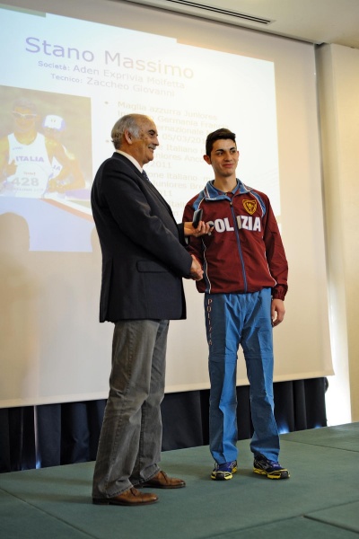Tra le molte autorità presenti l’Assessora regionale allo Sport Ing. Maria Campese che ha parlato della nuova rimodulazione dei contributi regionali per l’organizzazione di eventi, il Presidente del Coni Puglia ed Assessore allo Sport del Comune di Bari Ing. Elio Sannicandro e come graditi ospiti anche due componenti del settore tecnico nazionale Vittorio Visini e Tonino Andreozzi che nel pomeriggio di sabato si sono intrattenuti dibattendo con la struttura tecnica regionale. Passerella meritata per oltre un centinaio di premiati tra, dirigenti, tecnici e giudici distintisi nel corso della stagione 2011 unitamente alle tante maglie azzurre e campioni italiani tra cui l’atleta dell’anno Massimo Stano, Anna Clemente, Francesca Lanciano, Antonio Di Gioia, Michele Palmisano, Sara Loparco, Marialuna Frisini, Antonio Napoletano, Francesca Semeraro, Noemi Stella, Luigi Colella, Vito Minei, Vito Incantalupo, Aurelio Esposito e Gregorio Angelini tutti premiati con i rispettivi tecnici. Spazio anche all’amarcord con la premiazione da parte del Presidente Arese a cinque pugliesi del passato e del presente che hanno corso la maratona alle Olimpiadi e cioè Francesco Perrone e Vito Di Terlizzi (Roma 1960), Gioacchino De Palma (Città del Messico 1968), Giacomo Leone (Sydney 2000) e Ottavio Andriani (Pechino 2008).