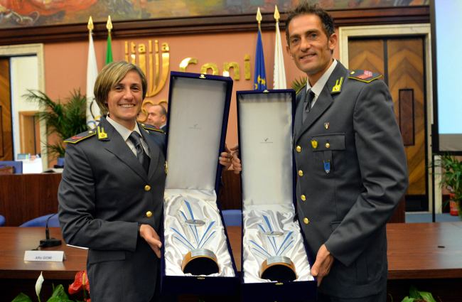 Nella foto (GMT/FIDAL), gli azzurri Antonietta Di Martino e Fabrizio Donato con il Premio "Bruno Zauli"