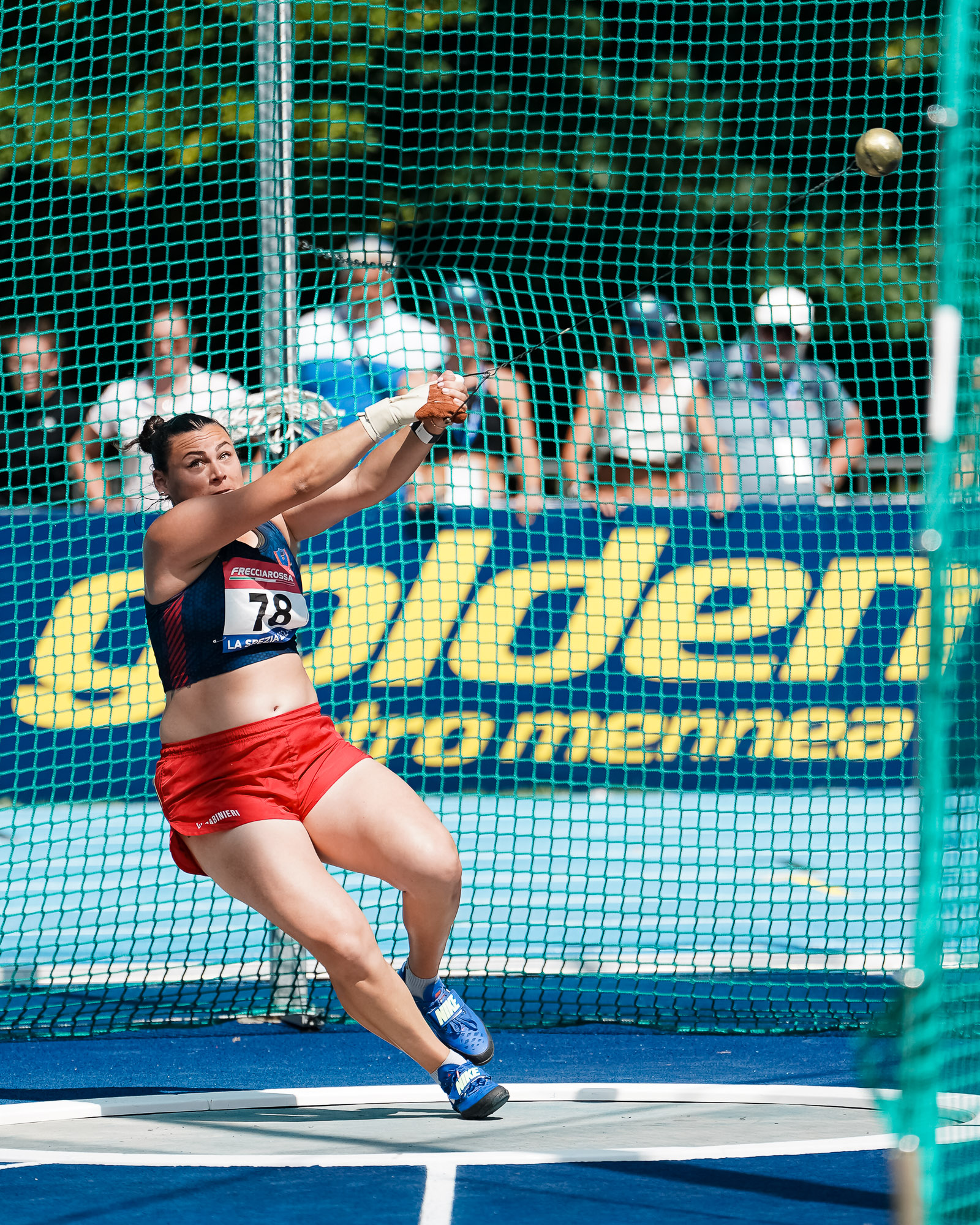 La campionessa dei Carabinieri vince il martello con 72,38, in una serie in cui ottiene altri 2 lanci oltre i 70 metri: 71,22 e 70,79. Buon 57,27, vicino alle sue migliori misure del 2019 e 2021, l'atleta di casa Agata Gremi (Atl. Brescia 1950). Fra le promesse 51,62 e primato personale per Angelica Arcari (Cus Parma), che entra fra le prime 10 emiliane all time; 47,45 per l'altra promessa Elena Odion (Atl. Lugo); nel martello giovanile (allieve e juniores con iè 4 kg) 48,49 per la junior Martina Ricci (Atl. Pietrasanta Versilia) e 38,16 per Asia Campani (Atl. Castelnovo Monti).