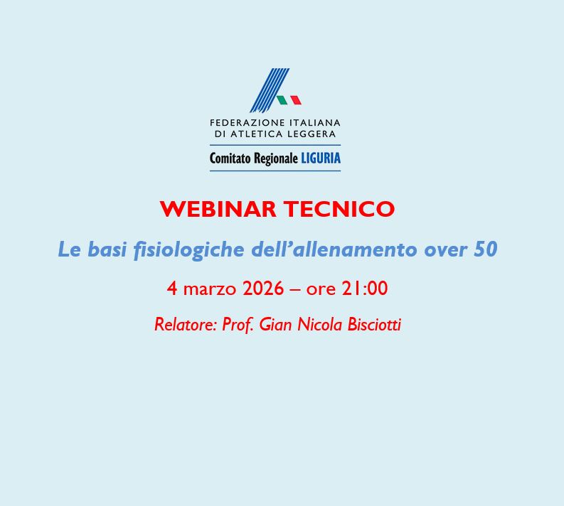 Il Comitato Regionale FIDAL Liguria, in collaborazione con ASSITAL e il Centro Studi & Ricerche FIDAL, organizza un Webinar dal titolo: