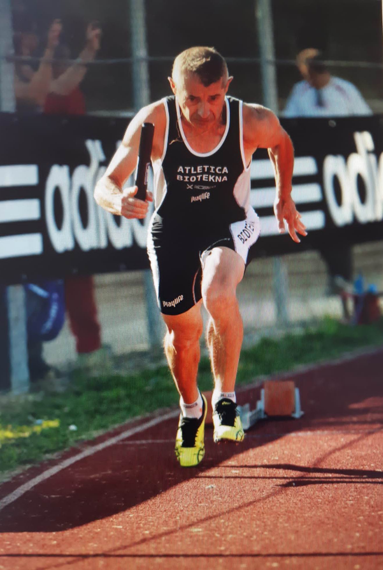 Nelle foto: uscita di Gianfranco dai blocchi nella prima frazione di una staffetta Biotekna (archivio Rossano Nordio)