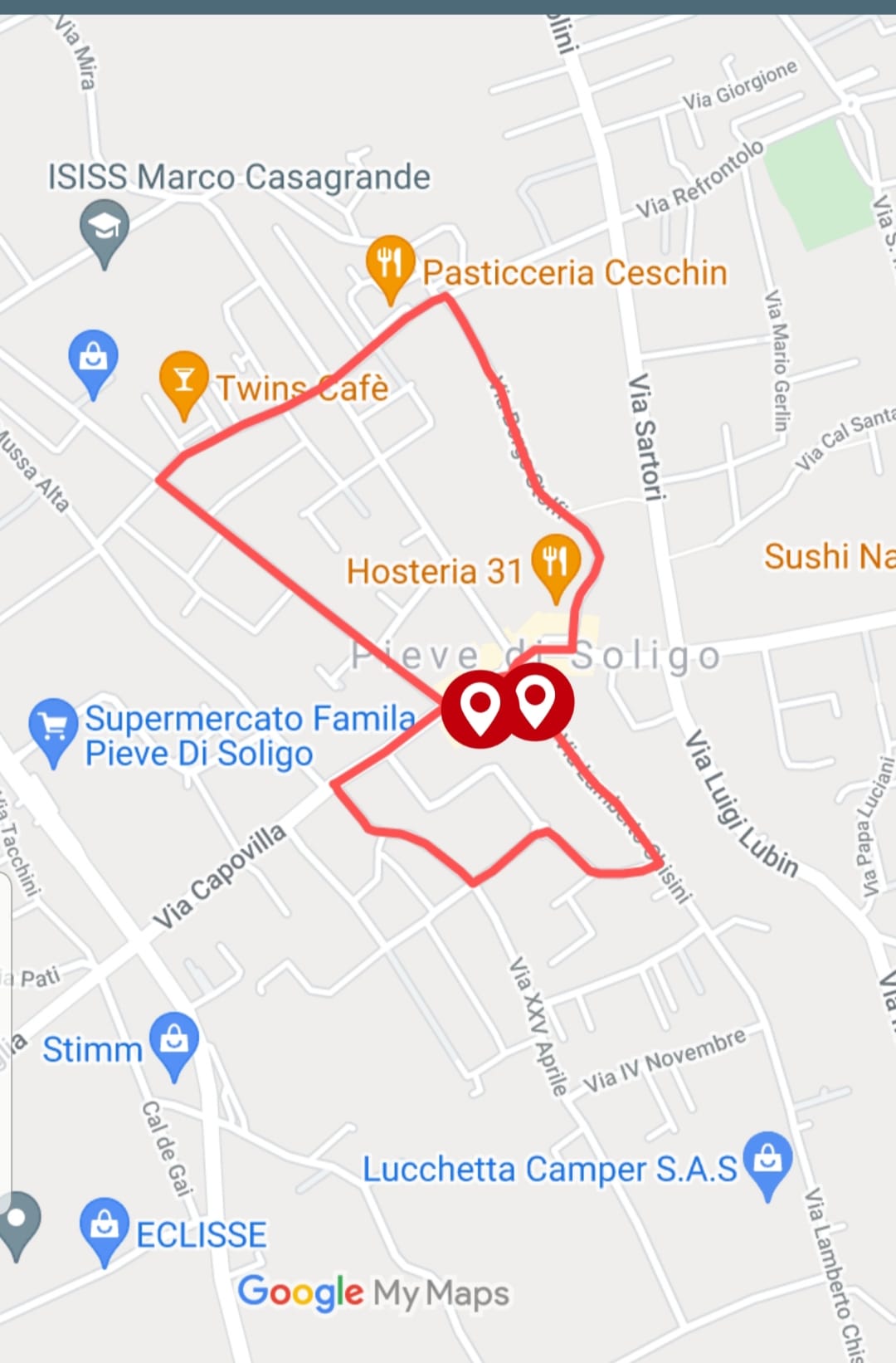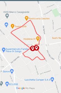 nelle foto: la locandina dell'evento; una bella immagine di Pieve di Soligo; il percorso di gara.